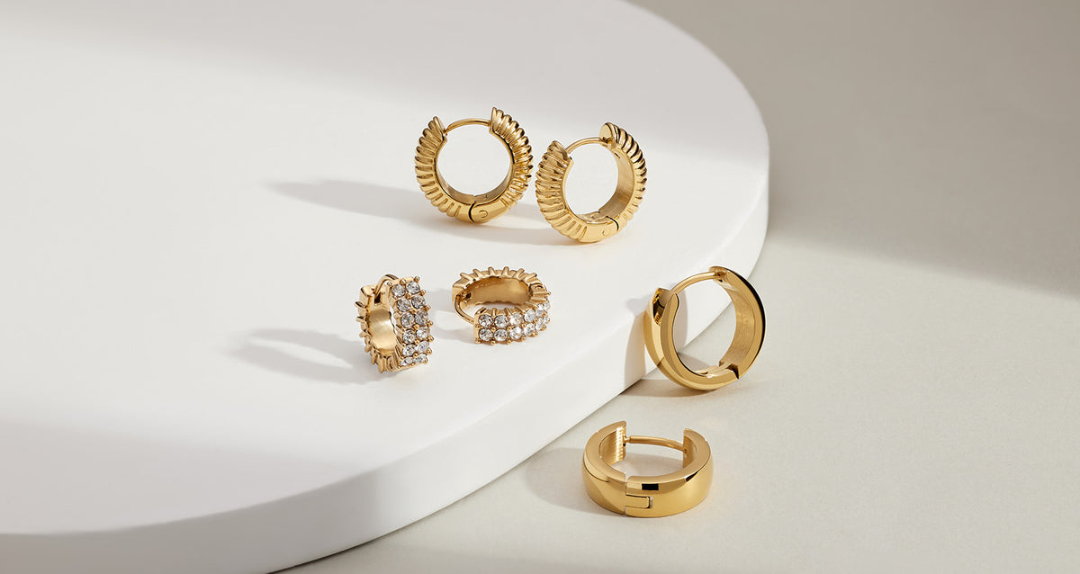 All our earrings gathered in one collection – hoops, drops, subtle designs, and sparkling details in silver and gold.