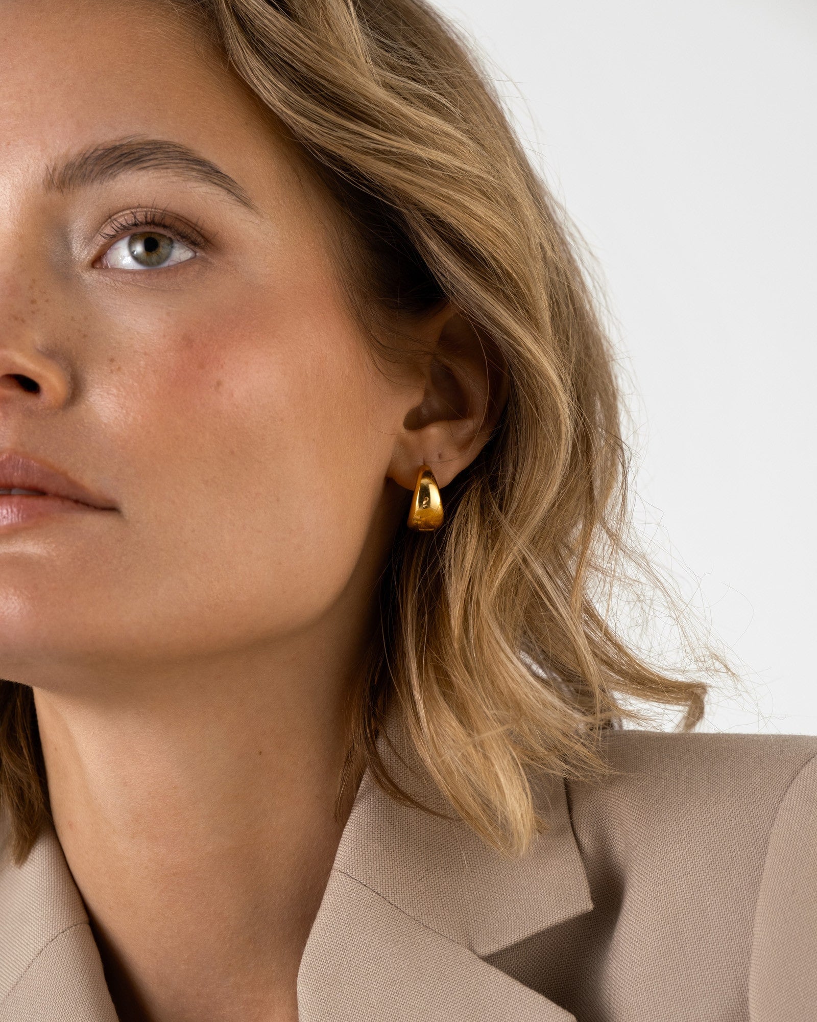 Hoop earrings in a durable design, crafted from solid stainless steel with 18K gold PVD plating. Water-resistant and hard-wearing, they retain both their color and elegance over time.