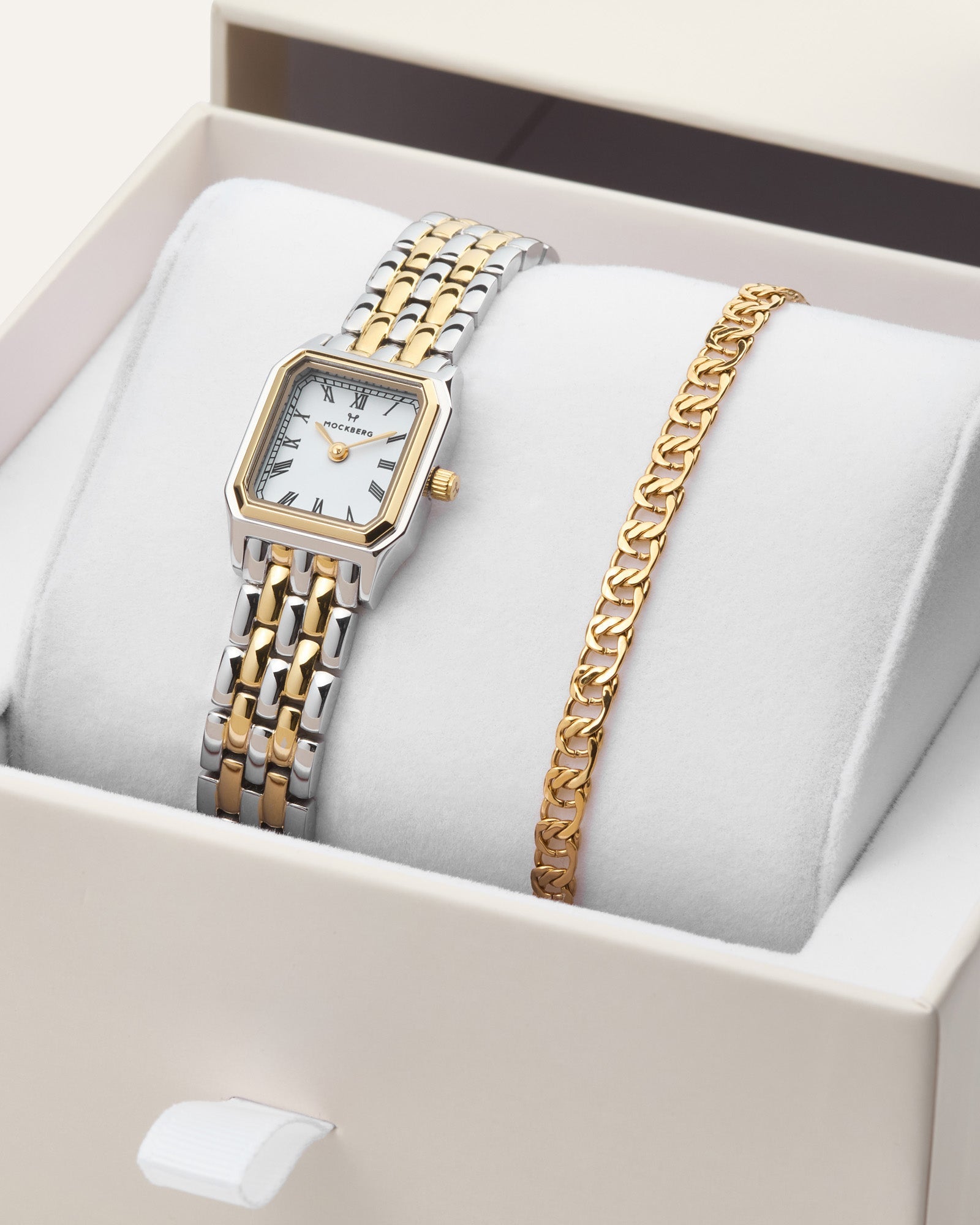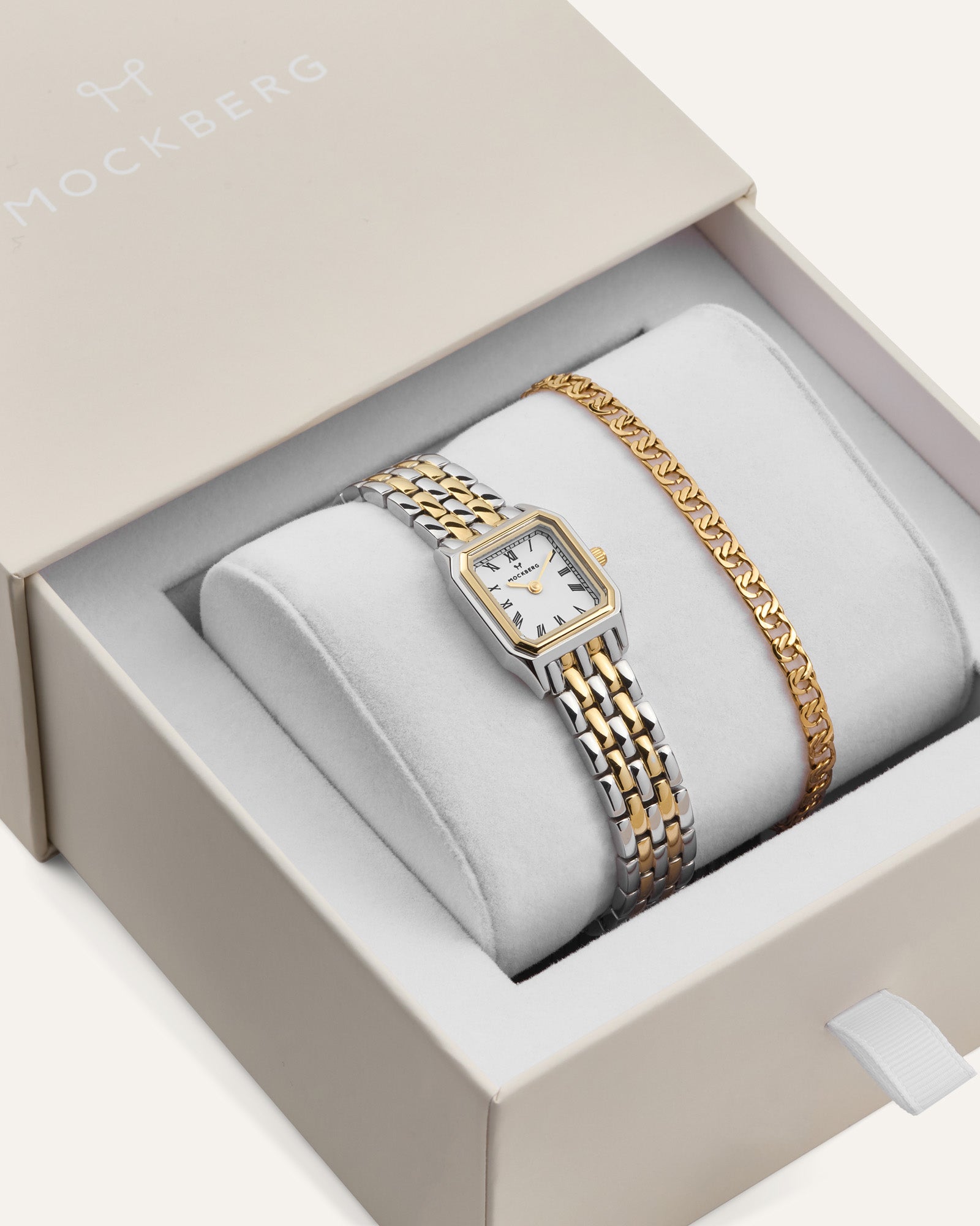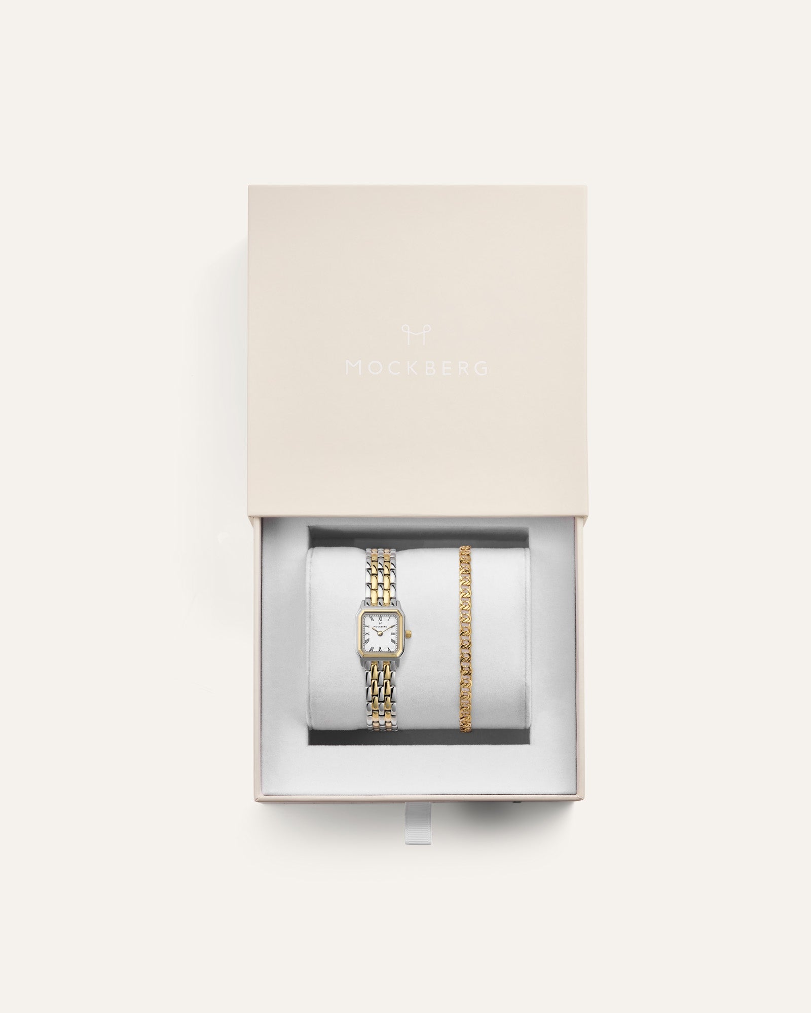 Beautiful combo box with our best-selling Classic watch and beautiful bracelet. The combination creates the perfect classic look that suits both everyday life and parties. The watch and bracelet come in a beautiful box, making this the ultimate Christmas present for someone you love!
