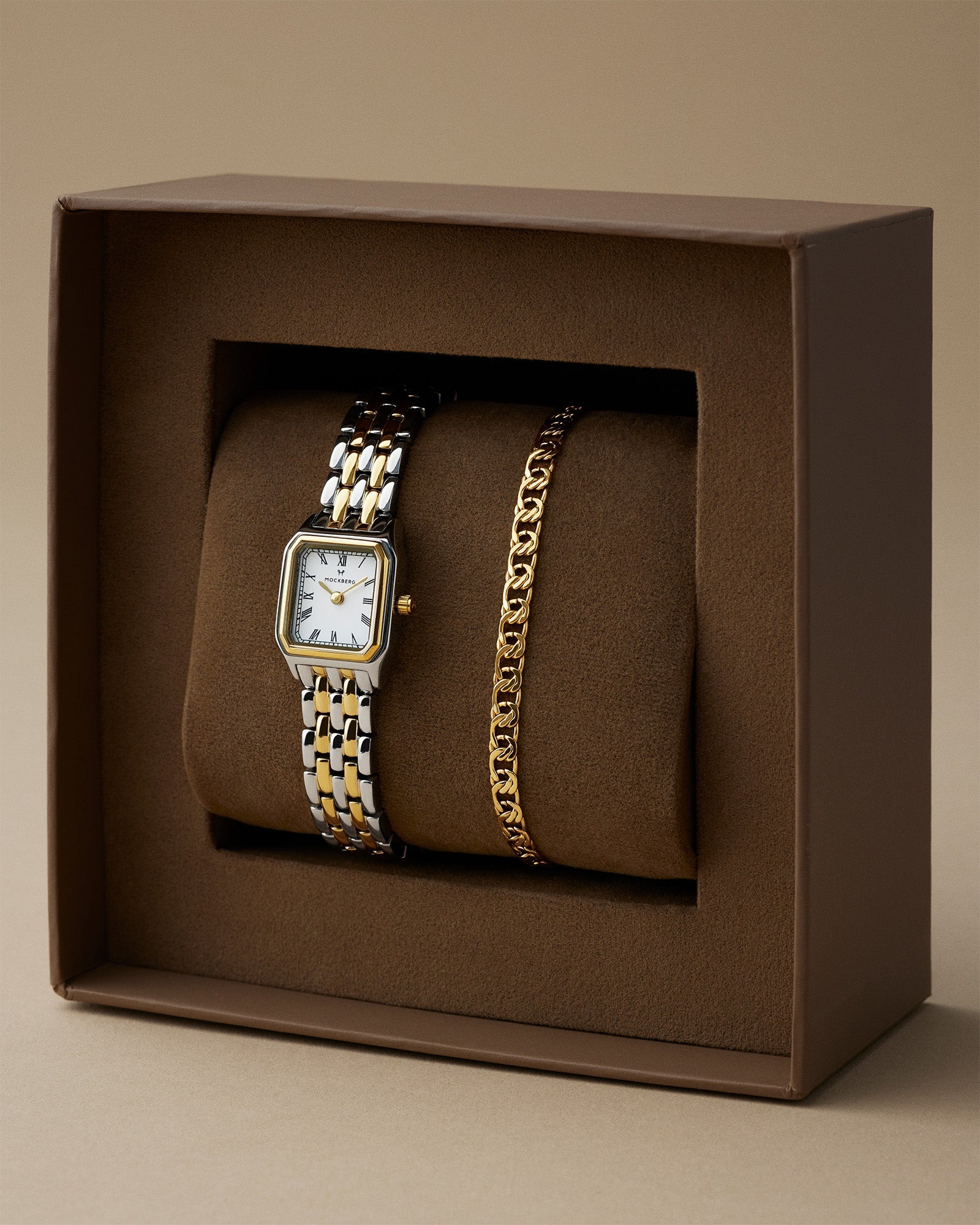 Beautiful combo box with our best-selling Classic watch and beautiful bracelet. The combination creates the perfect classic look that suits both everyday life and parties. The watch and bracelet come in a beautiful box, making this the ultimate Christmas present for someone you love!