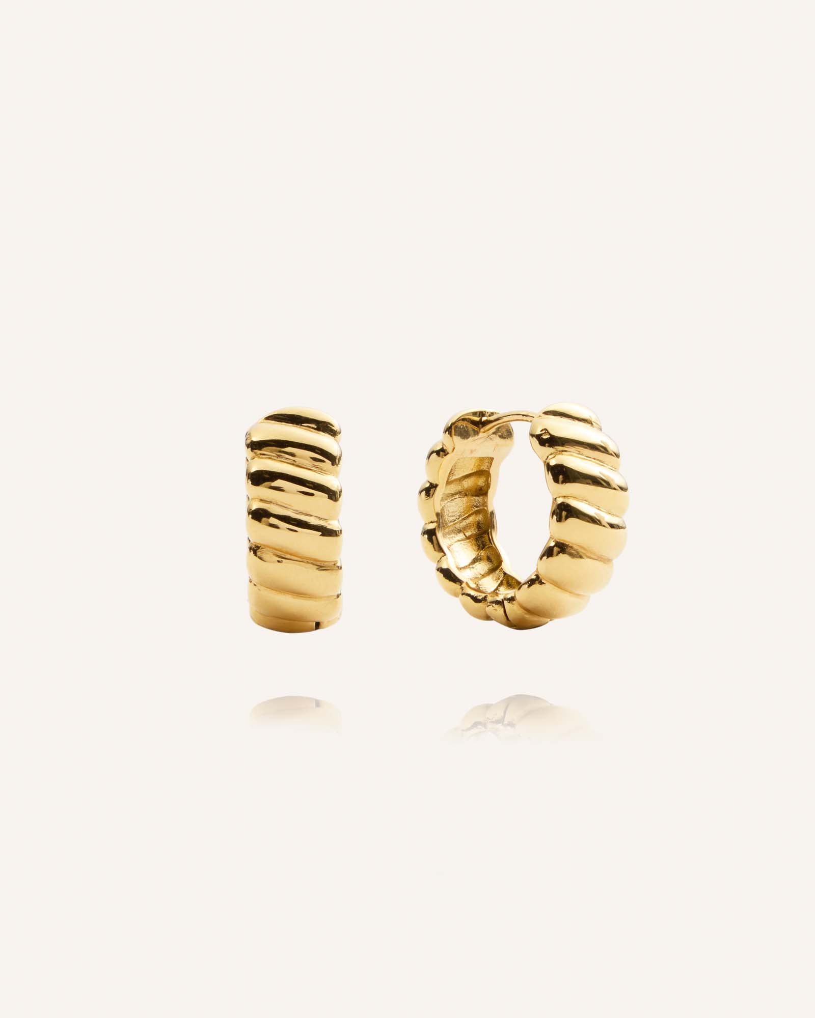 Curved Ribbed Earrings strike the perfect balance between classic details and modern style. Made from durable steel with 18k gold plating, they are water-resistant and designed to accompany you through both everyday moments and special occasions.