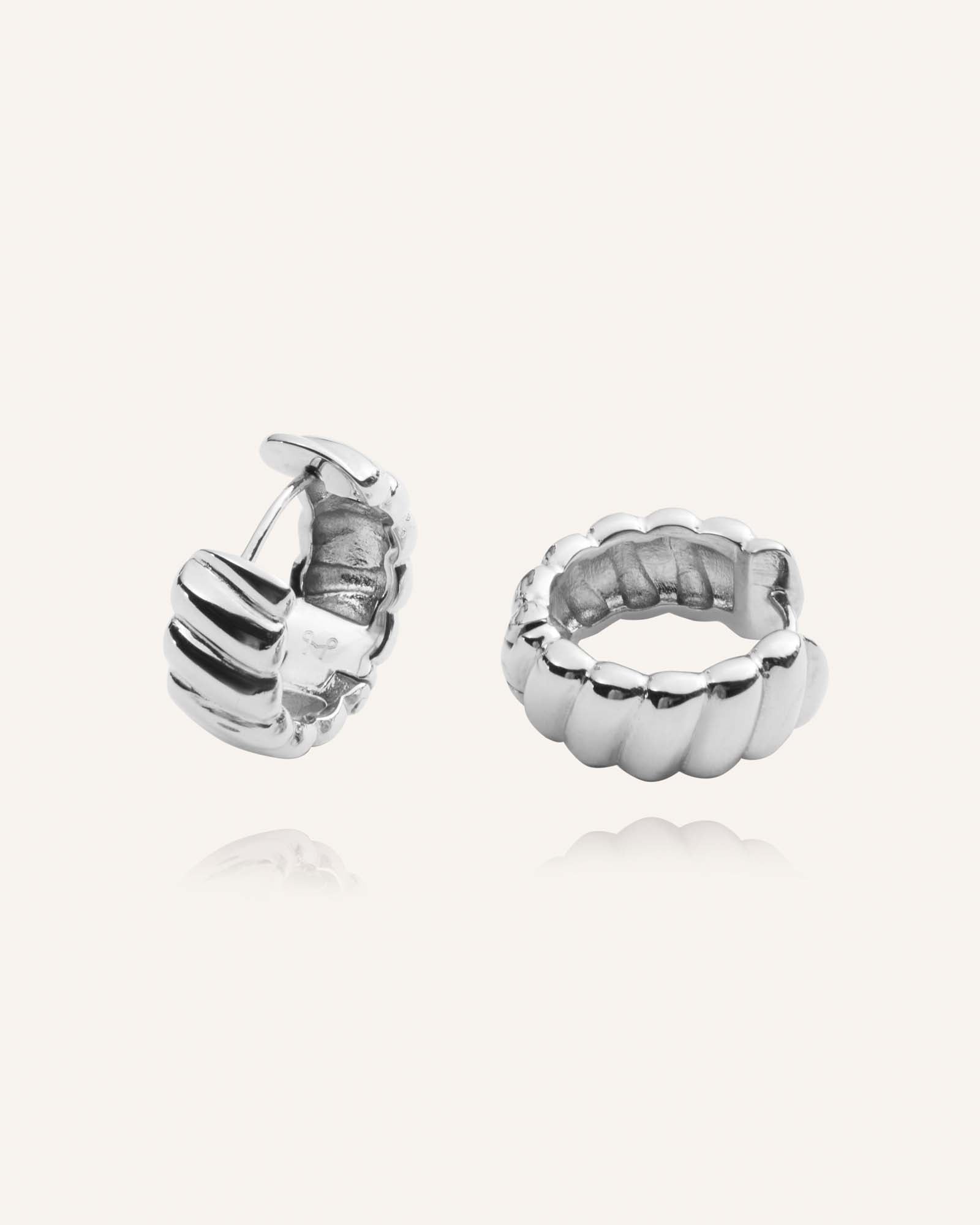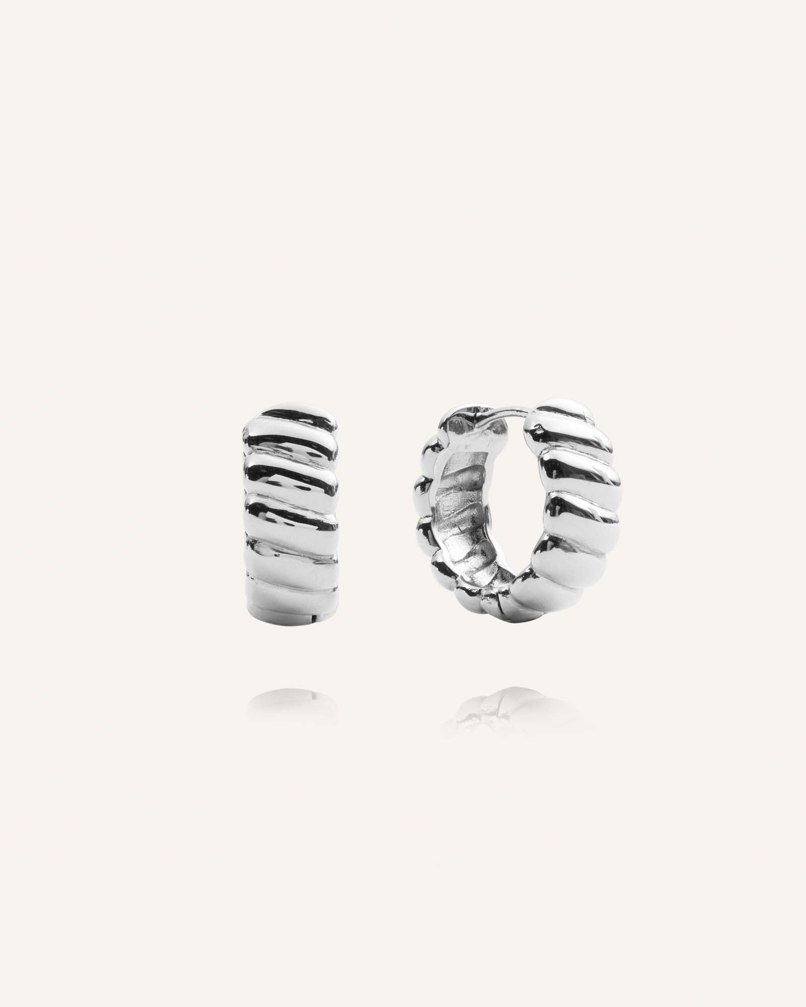 Curved Ribbed Earrings strike the perfect balance between classic details and modern style. Made from durable steel, they are water-resistant and designed to accompany you through both everyday moments and special occasions.