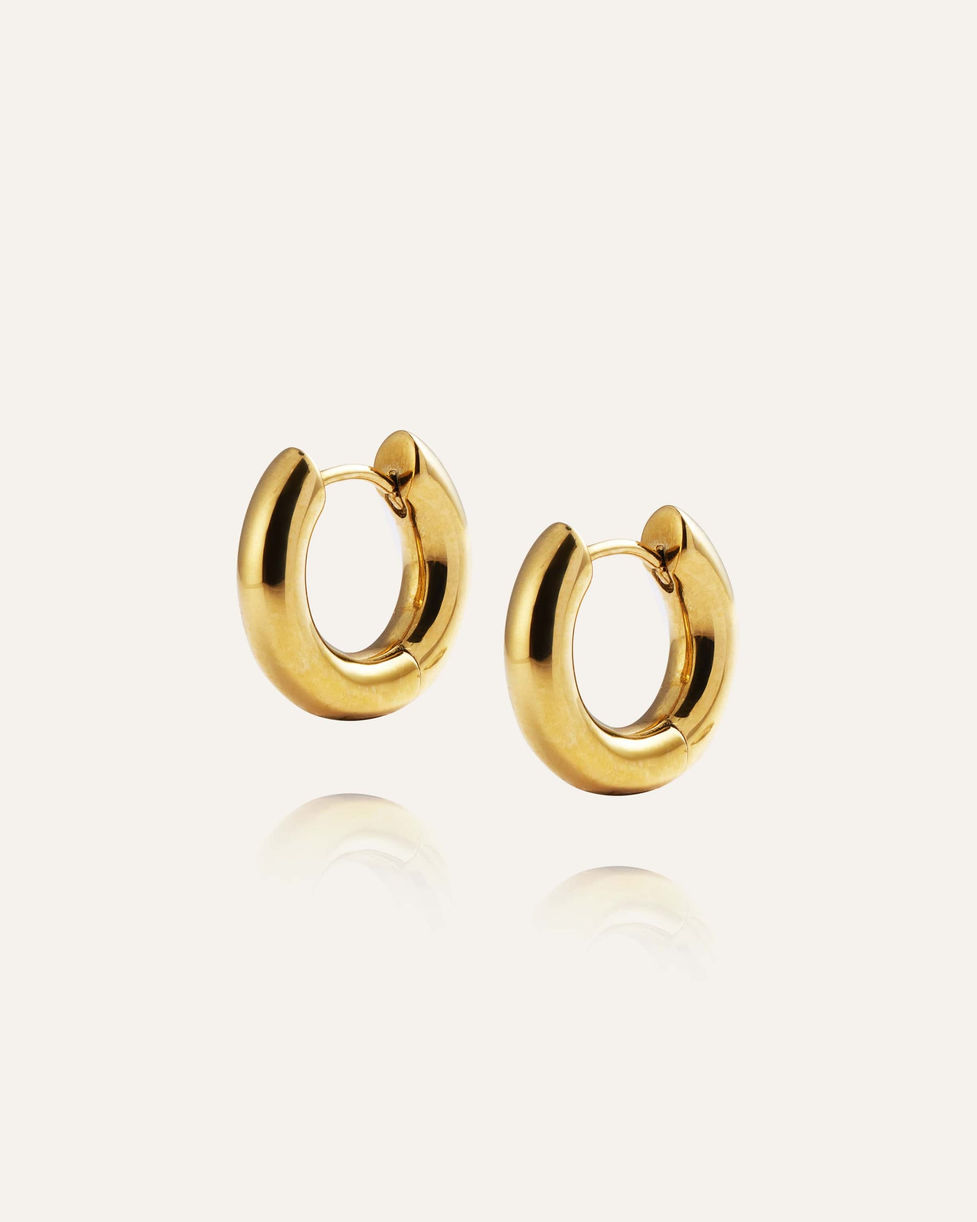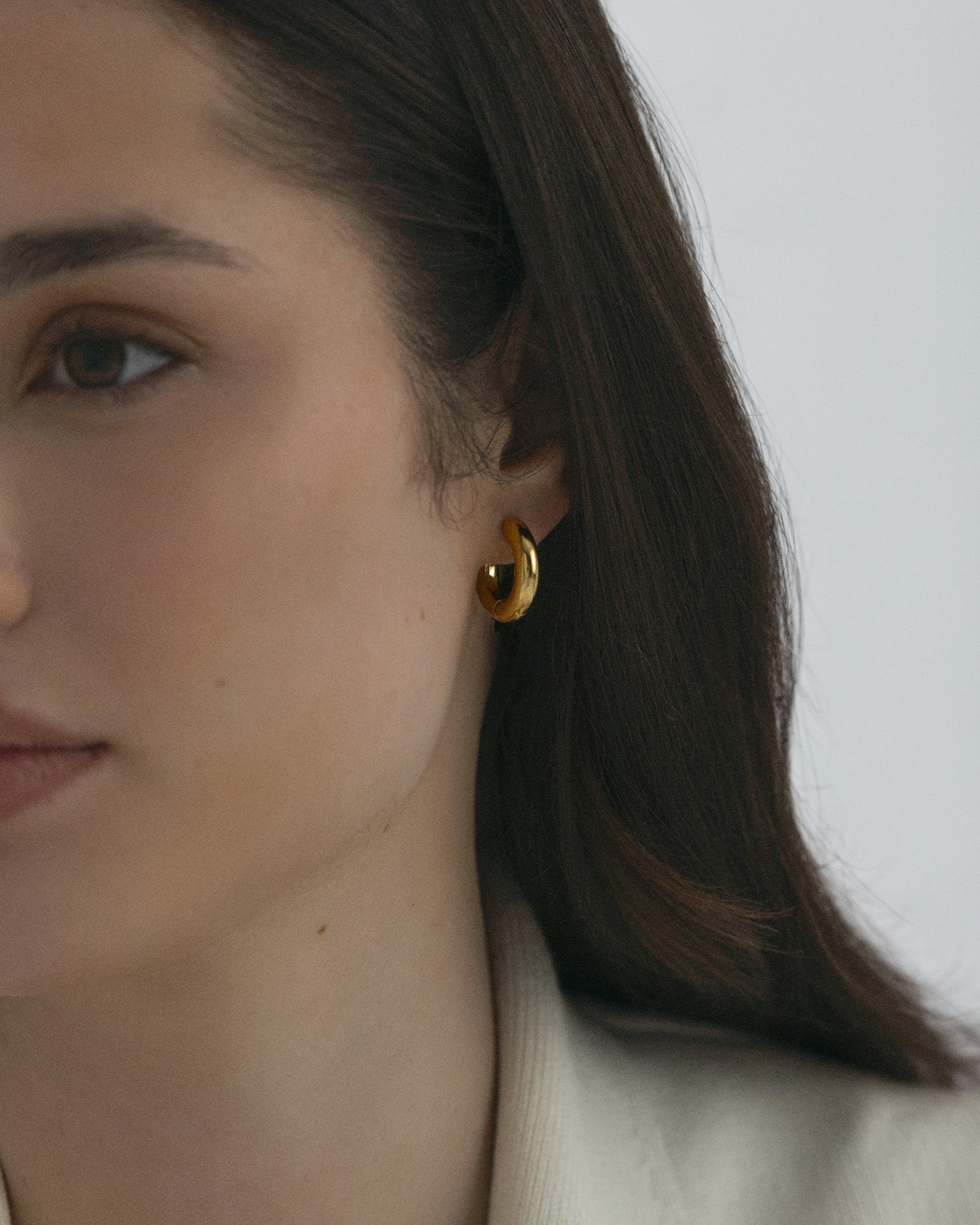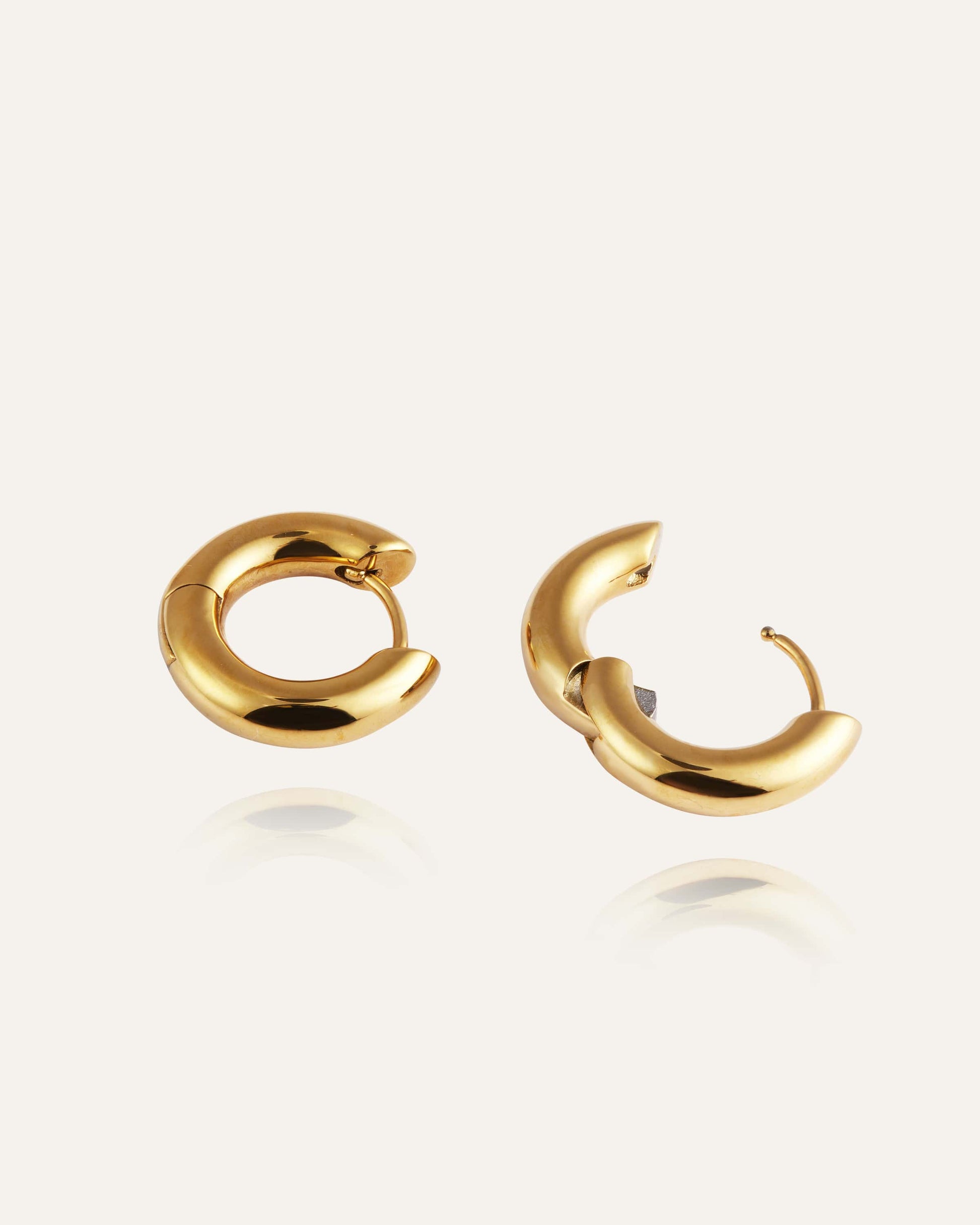 Hoop earrings with a soft, modern shape, crafted from solid stainless steel with 18K gold PVD plating. Durable and water-resistant, they retain their color and style over time. A combination of elegance and durability for your everyday look.