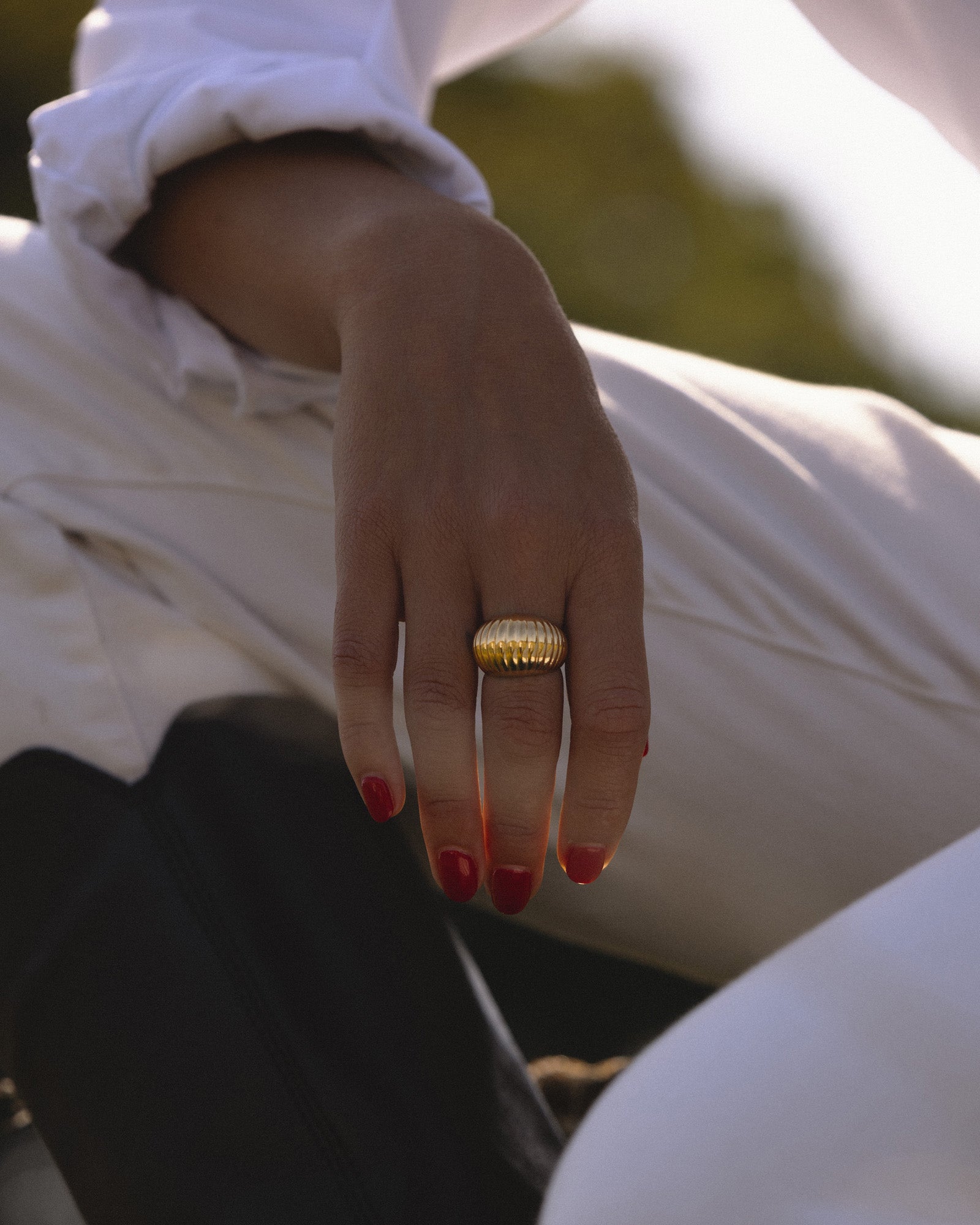 Henriette Ring has a rounded, ribbed surface that creates a distinct structure and gives a bold expression.