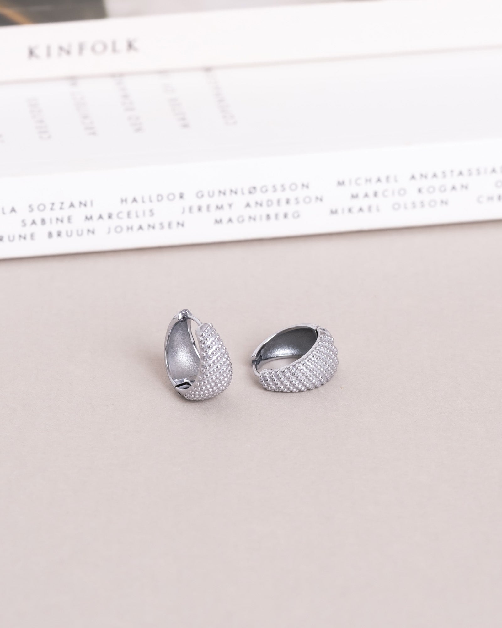 Honey Hoops feature a unique design with a textured pattern that sets them apart from the classic Bold Hoops. Crafted from solid stainless steel, they are both durable and water-resistant.