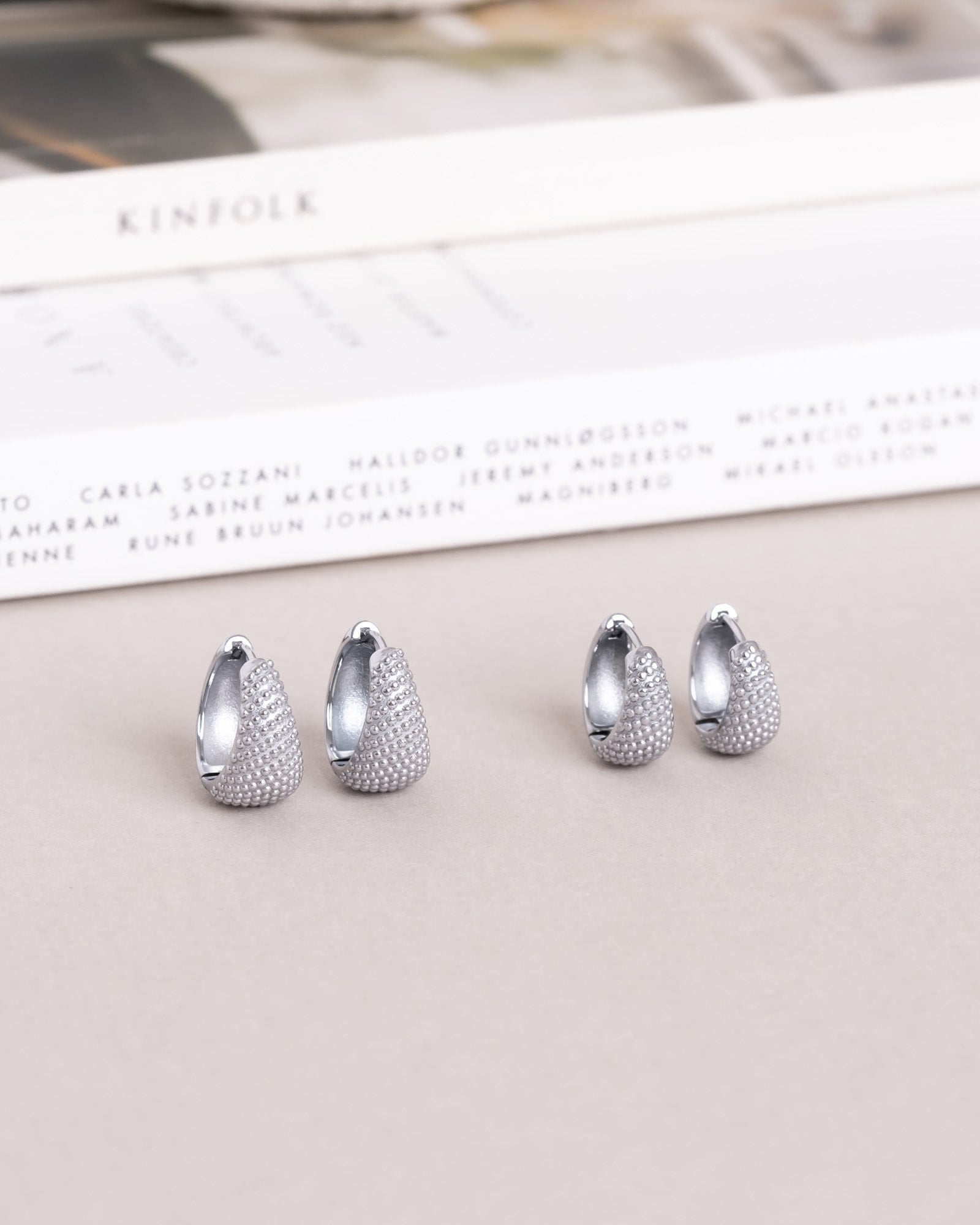 Honey Hoops feature a unique design with a textured pattern that sets them apart from the classic Bold Hoops. Crafted from solid stainless steel, they are both durable and water-resistant.