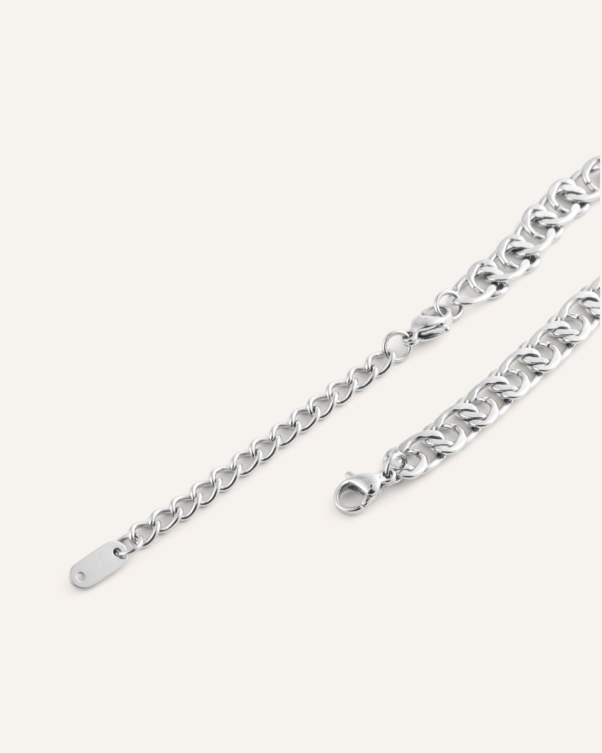 Infinity Bracelet is a classic chain with flat-lying links for a sleek, comfortable fit. Wear it solo or pair it with a watch and other bracelets. Crafted from stainless steel in a silver tone—durable and water-resistant so its shine and finish last over time. The extension chain can be removed for a customized fit.