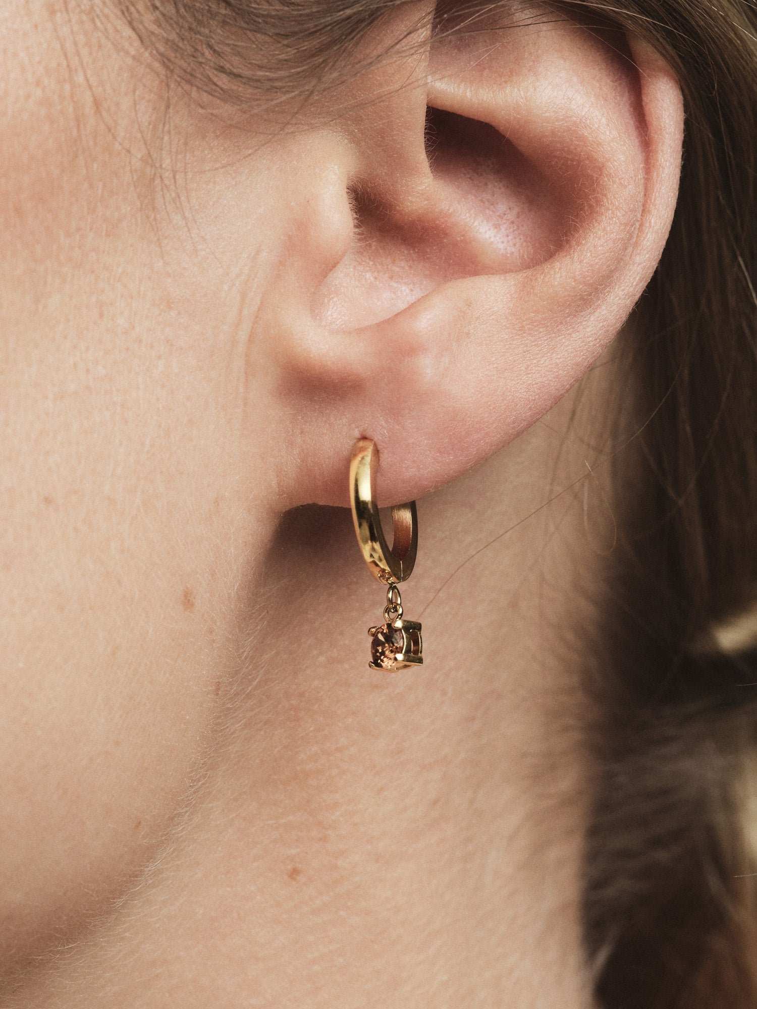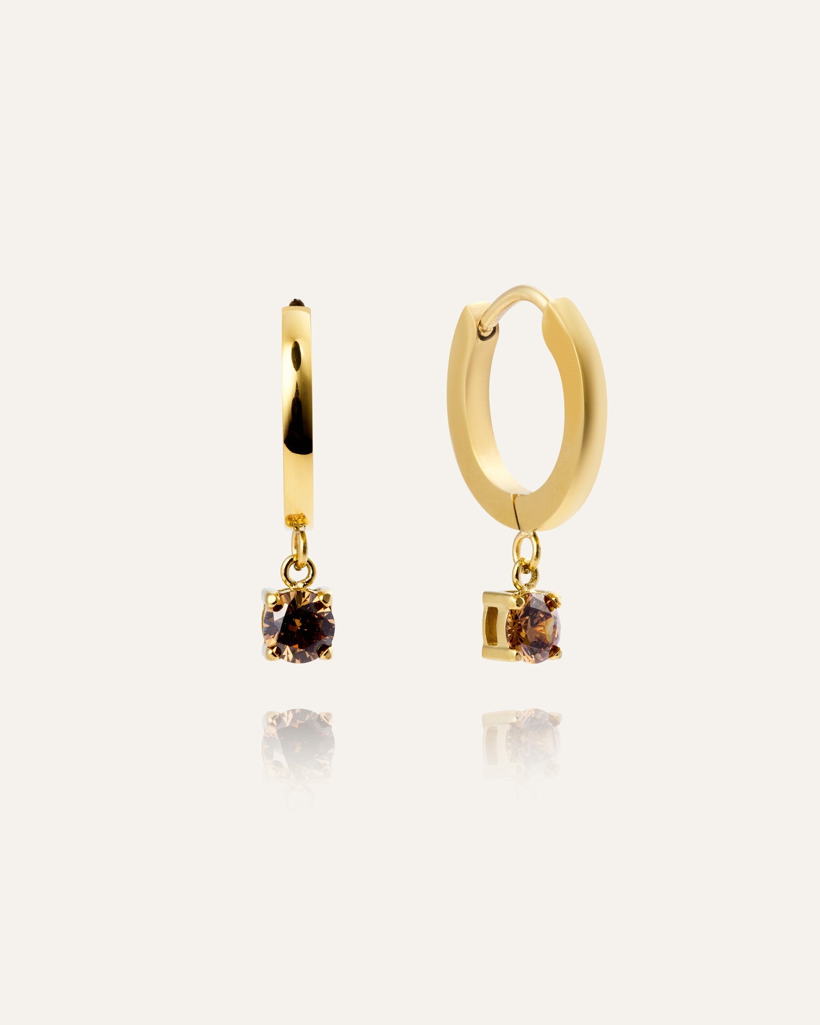 Jolie Coffee Hoops are a modern take on our classic hoops, now featuring round coffee-colored stones. Crafted from stainless steel, they are both durable and water-resistant for daily wear.