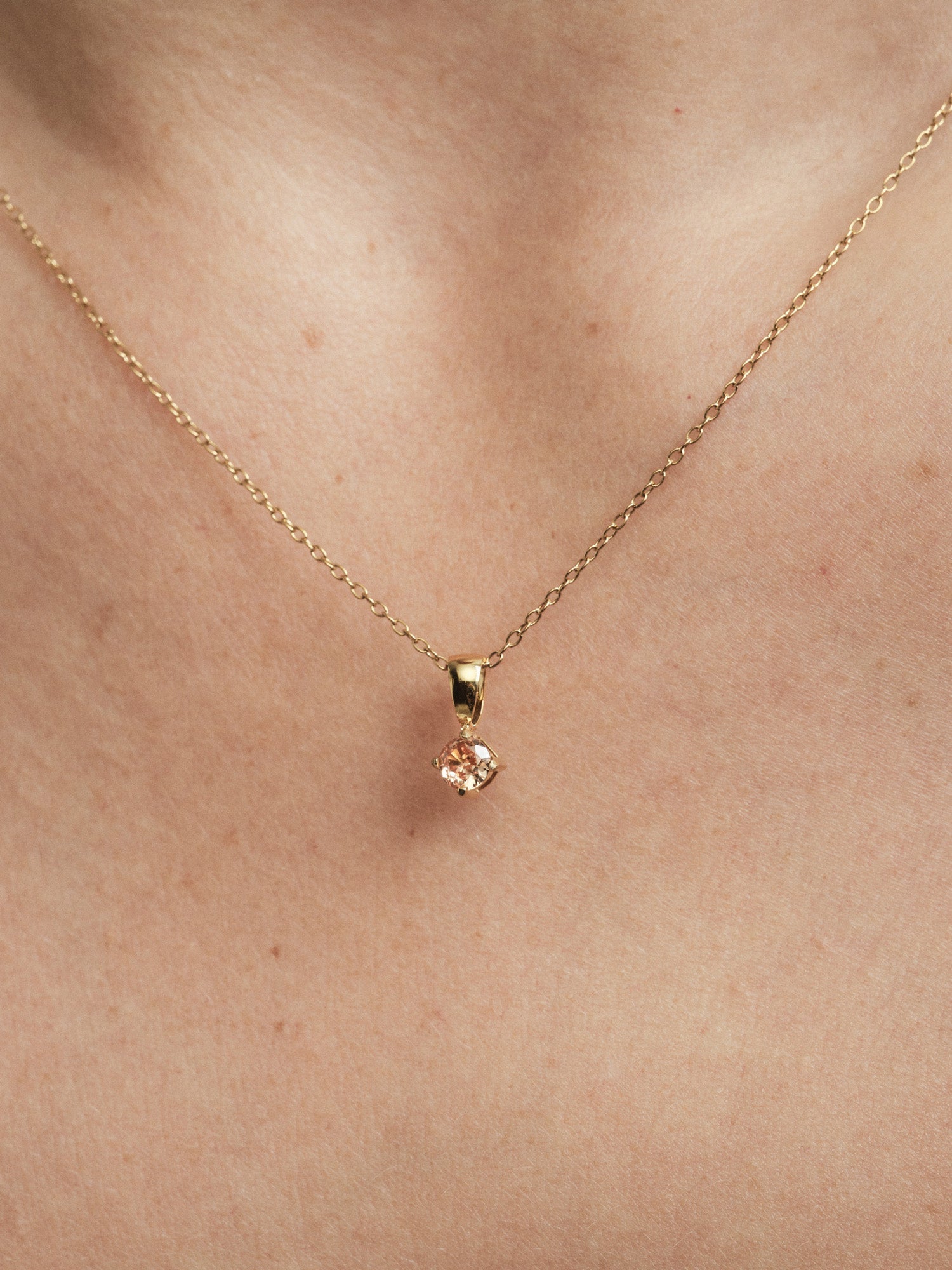 Jolie Champagne Necklace is a minimalist necklace with a round champagne-colored stone attached to a thin chain. Made from stainless steel with PVD plating, it is both durable and water-resistant, ensuring it retains its color and shine over time.