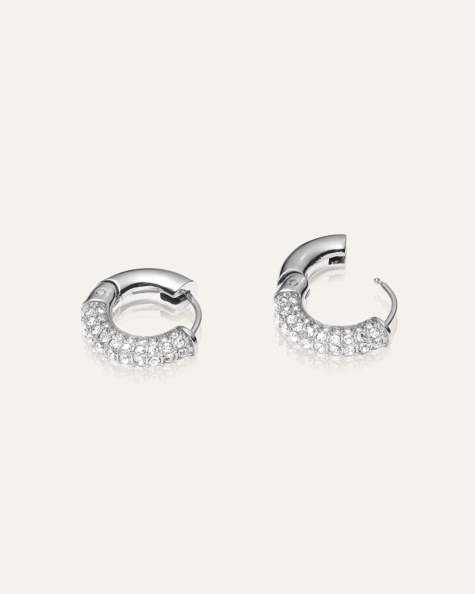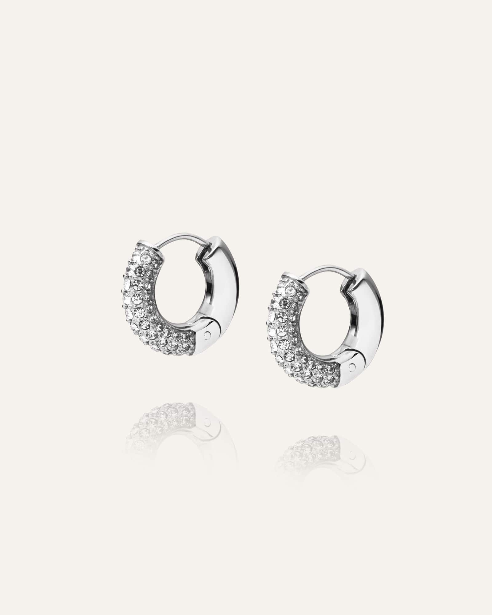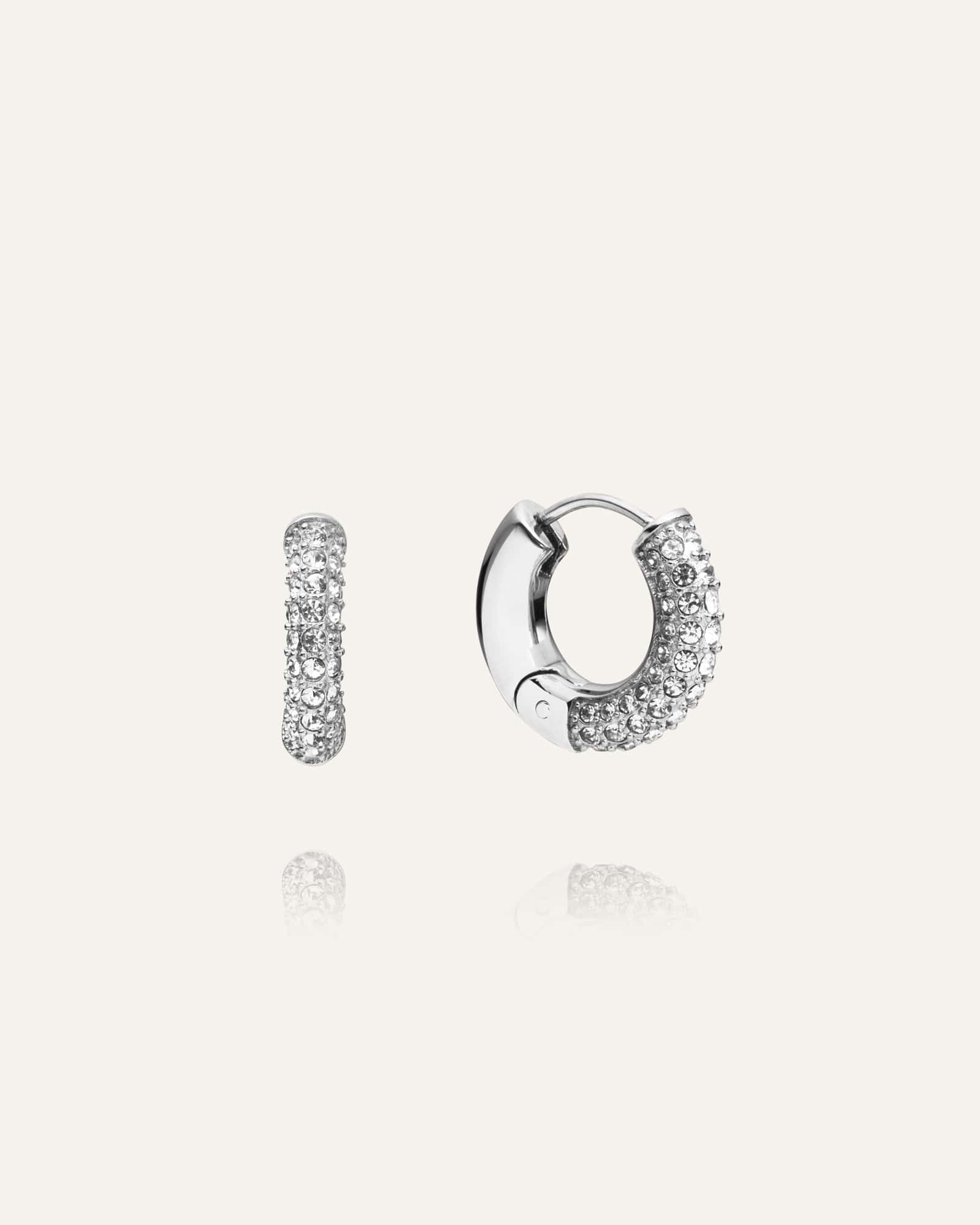 Crafted from stainless steel and adorned with cubic zirconia stones, they are both durable and water-resistant. A timeless design created to be worn every day without losing its elegance.