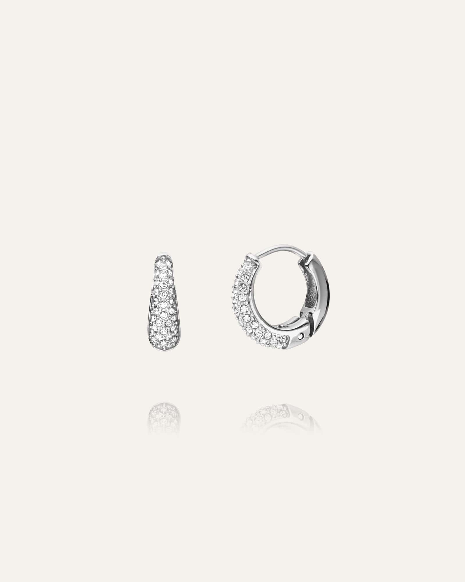 Discreet in size, maximal in elegance. The Pavé Precious Hoops are adorned with sparkling cubic zirconia stones and crafted from stainless steel. Durable and water-resistant to ensure they retain their color and shine over time.