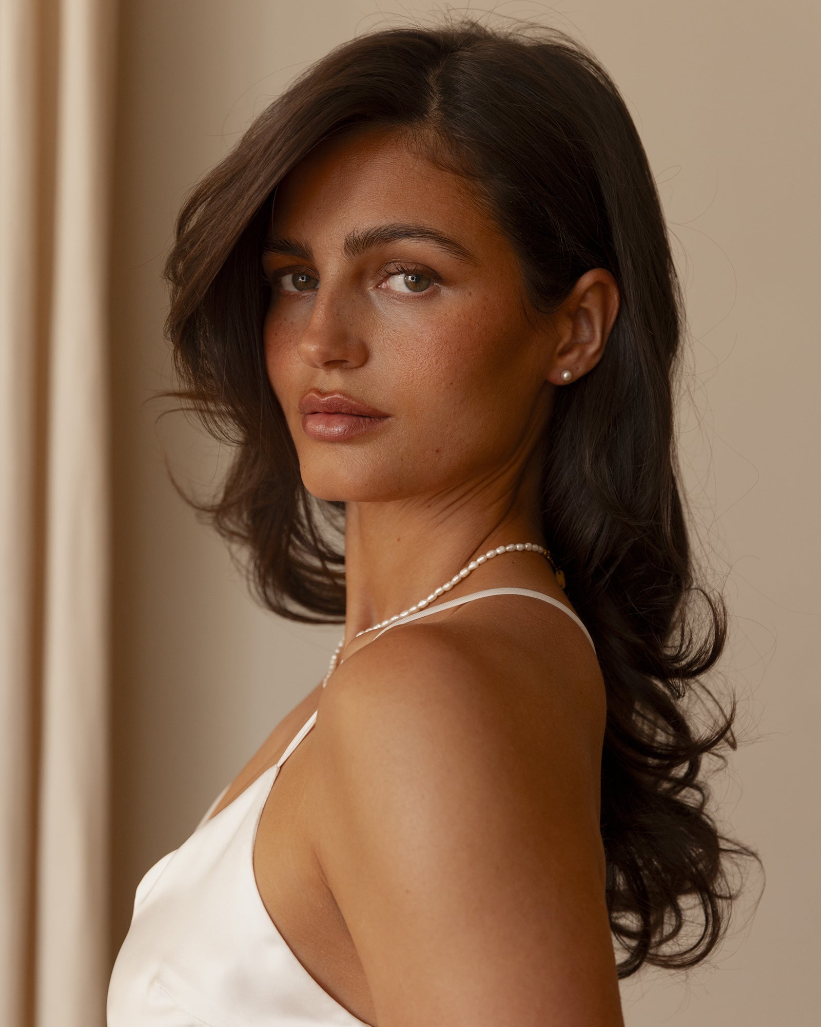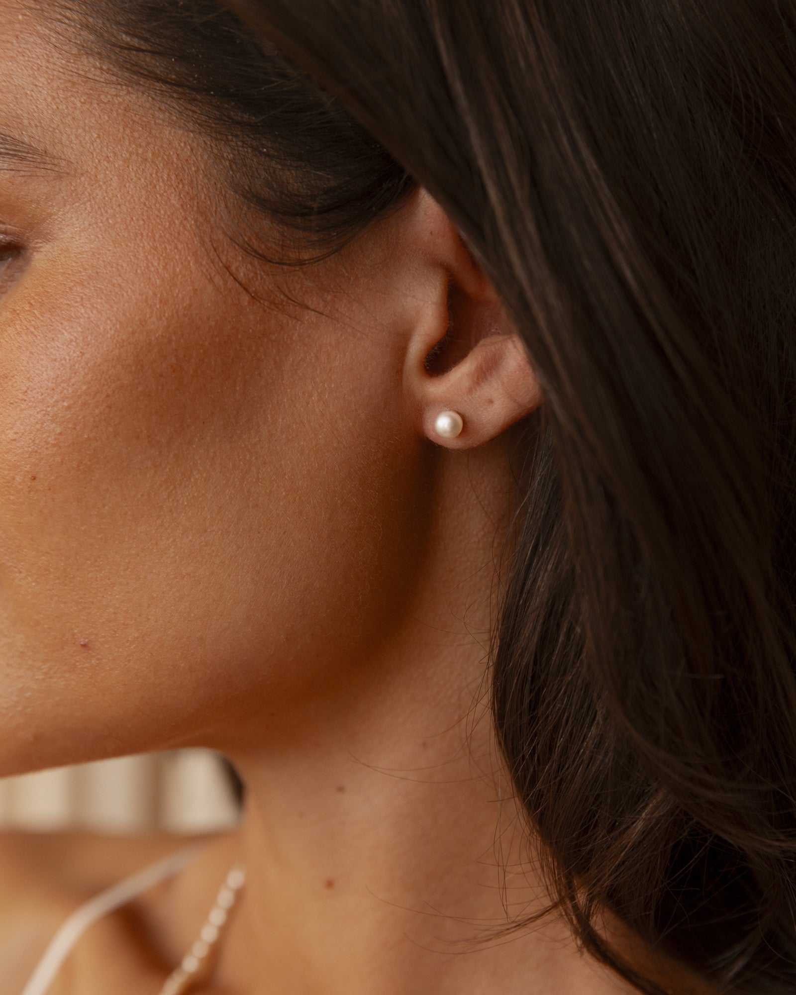 Pearl Gold Studs combine a freshwater pearl with a stainless steel post plated with 18K gold PVD. The warm gold tone enhances the pearl’s natural luster, creating a soft glow near the face. Thanks to the durable plating, the earrings resist everyday wear and retain their shine over time. Ideal to wear solo or paired with smaller studs.