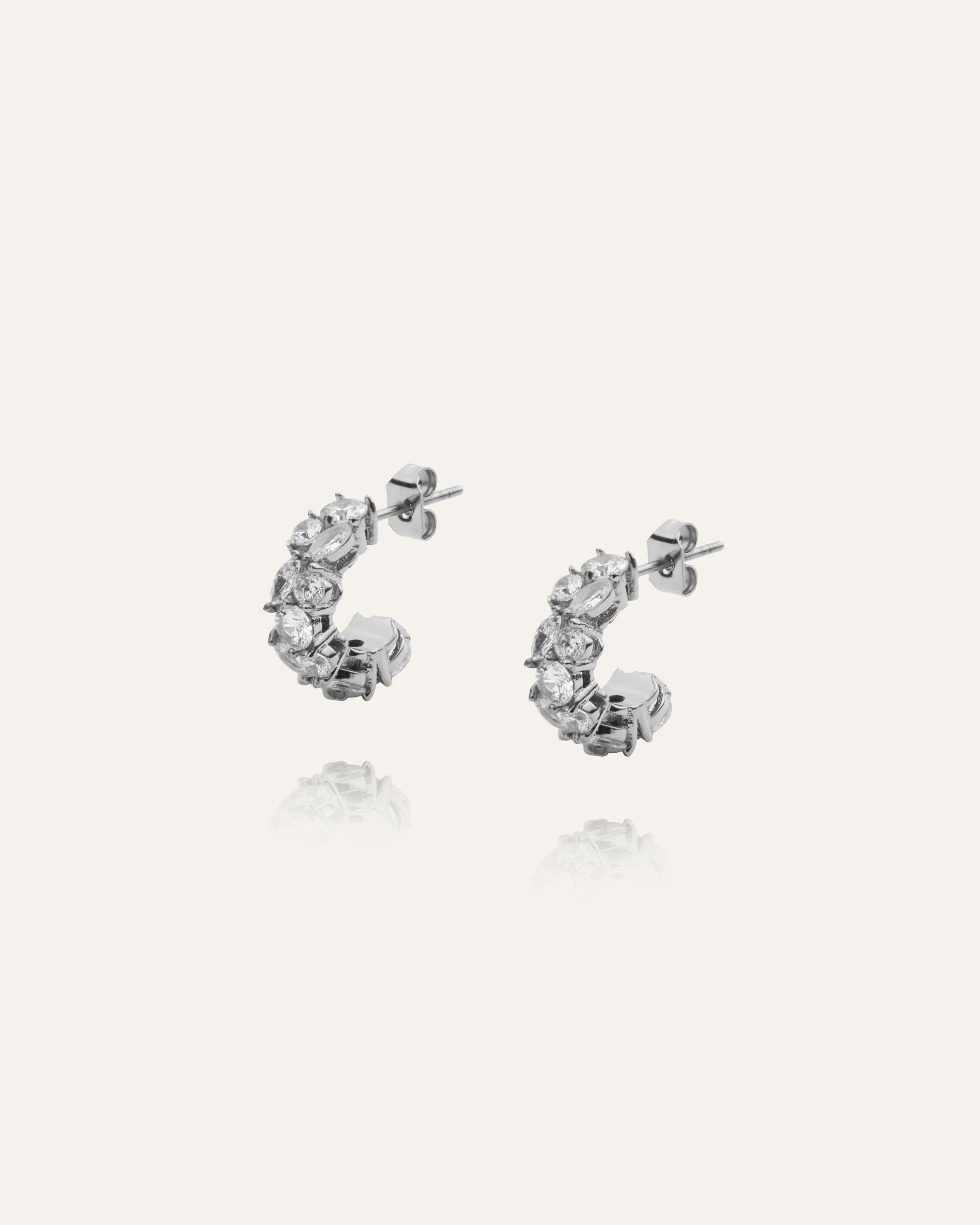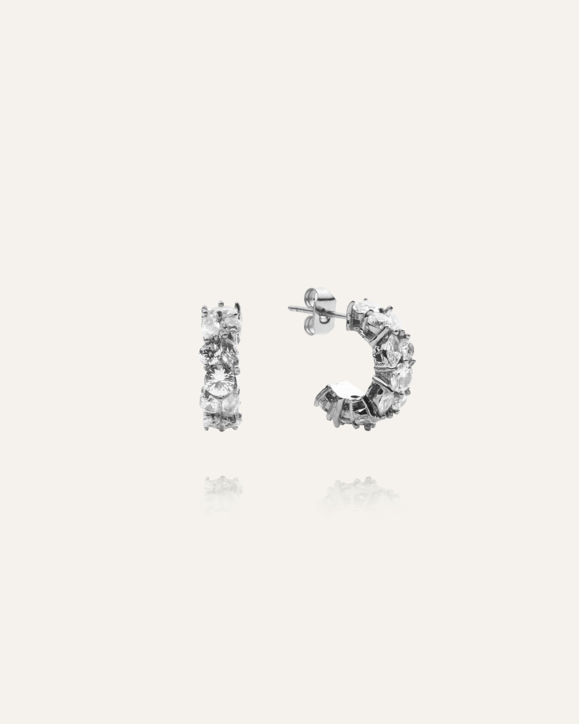 Elegant earrings adorned with cubic zirconia stones. Crafted from stainless steel, they are both durable and water-resistant, ensuring they retain their color and style over time. Designed as a tribute to women around the world.