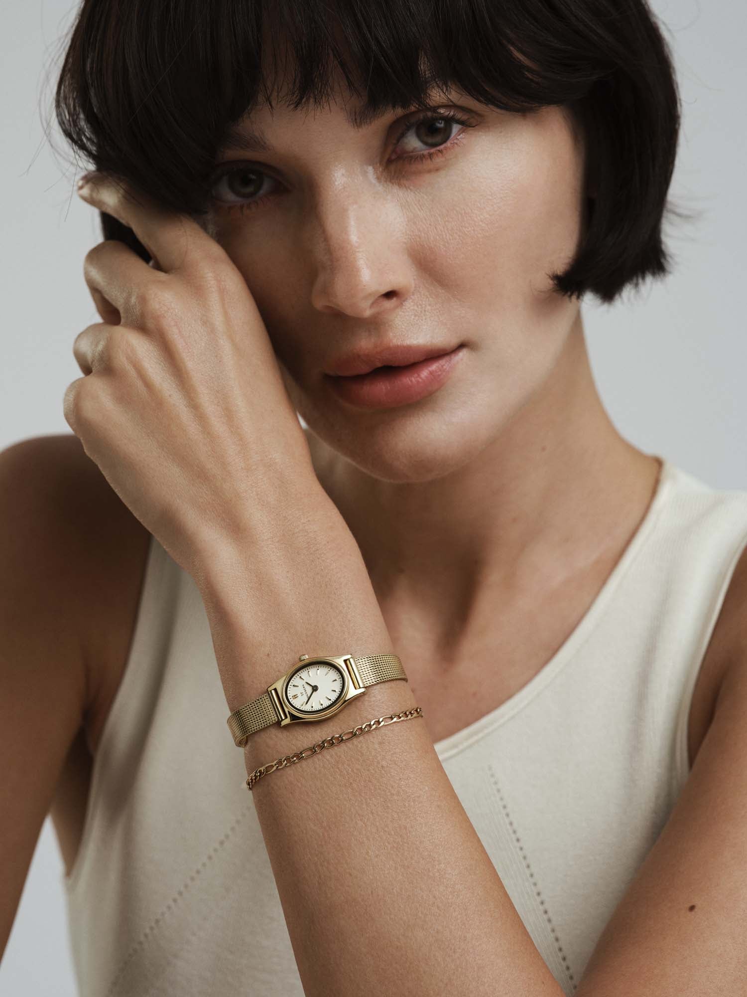 Strap: Gold-plated stainless steel mesh bracelet