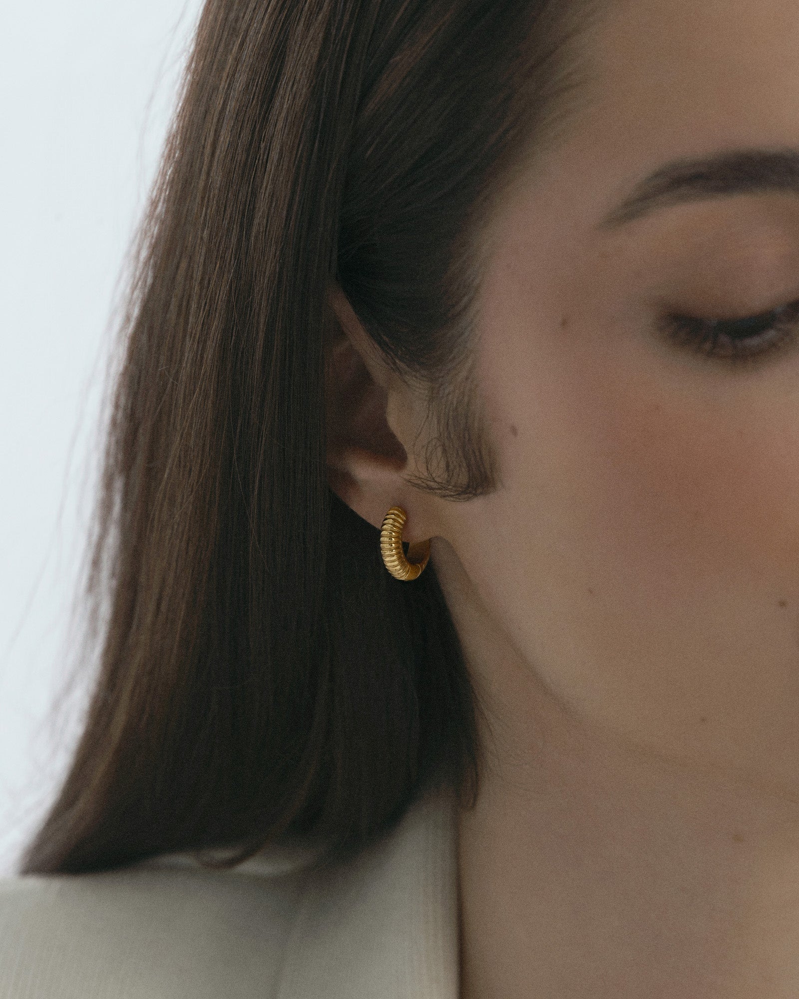 Ribbed Hoops feature a unique design with a ribbed texture that sets them apart from the classic Everyday Hoops. Crafted from solid stainless steel with 18K gold PVD plating, they are durable and water-resistant, ensuring they retain their color and style over time.
