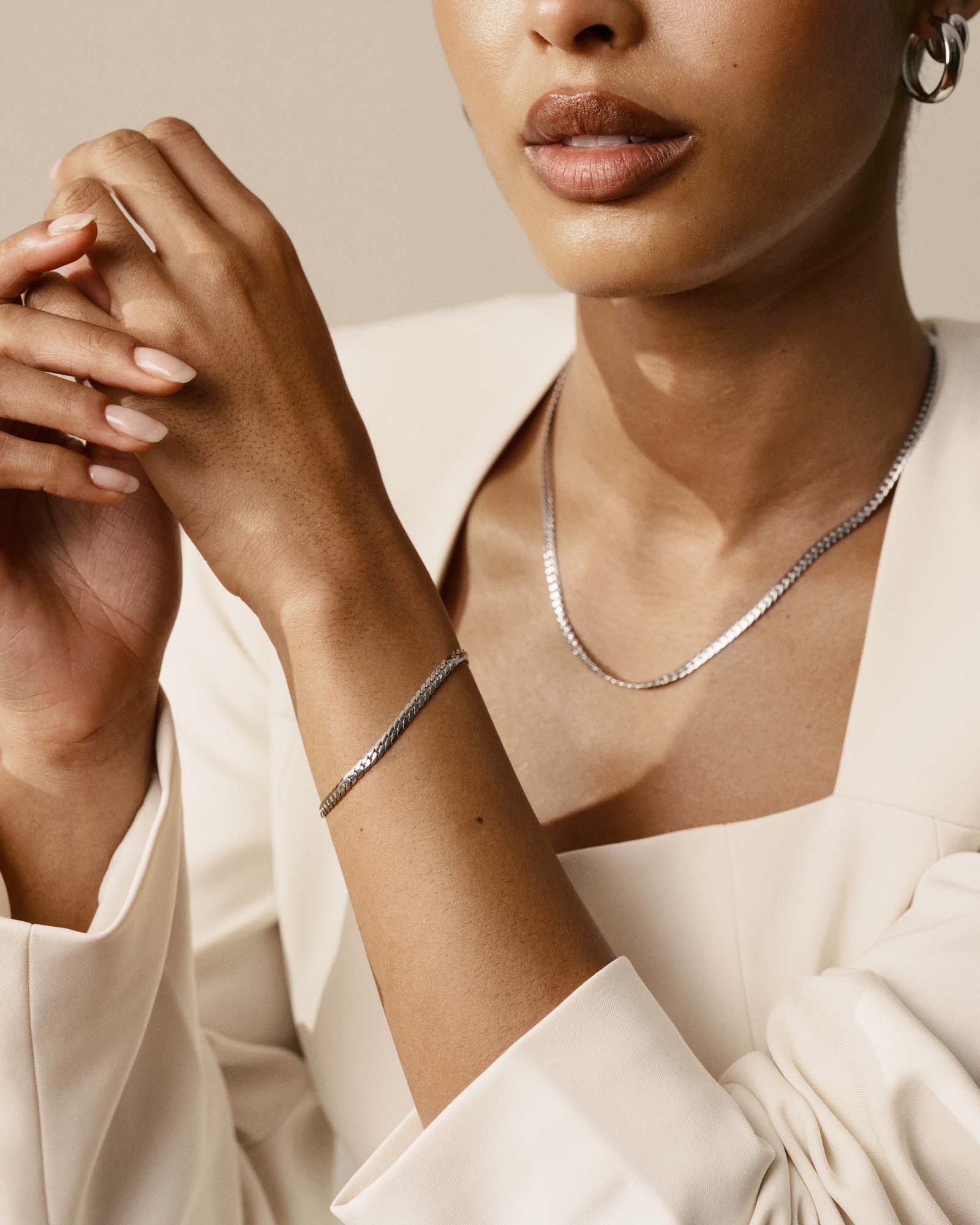 Smooth and sleek against the wrist, the serpentine bracelet has a fluid drape that feels as good as it looks. A piece you'll reach for every day without thinking and notice immediately when it's missing.