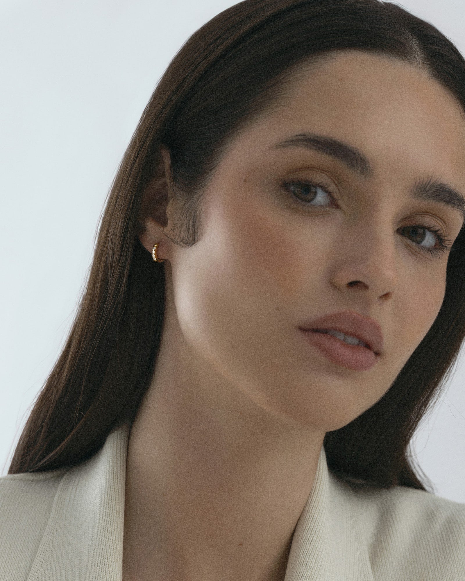 Timeless hoops with cubic zirconia stones, crafted from solid stainless steel with 18K gold PVD plating. Durable and water-resistant, they retain their color and elegance over time. Perfect to pair with our Classic Hoops.