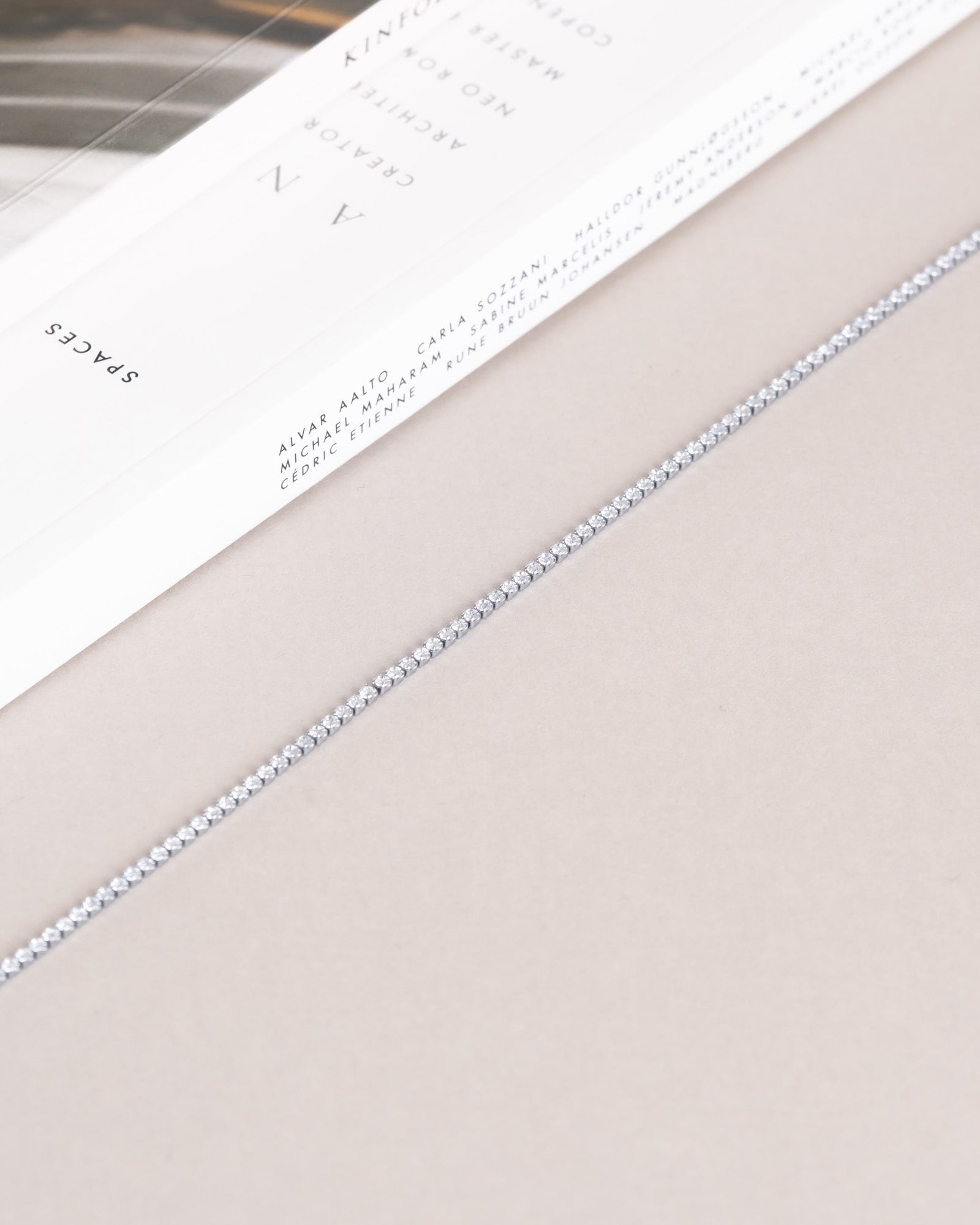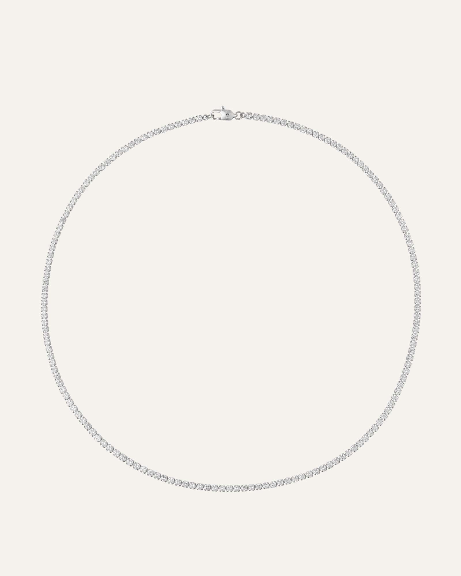 Shiny Tennis Necklace is a thinner version of our classic Tennis Necklace, designed with sparkling cubic zirconia stones running along the entire chain. Made from stainless steel with PVD plating, it is both durable and water-resistant, ensuring it retains its color and shine over time. Perfect to wear alone or layered with other necklaces.