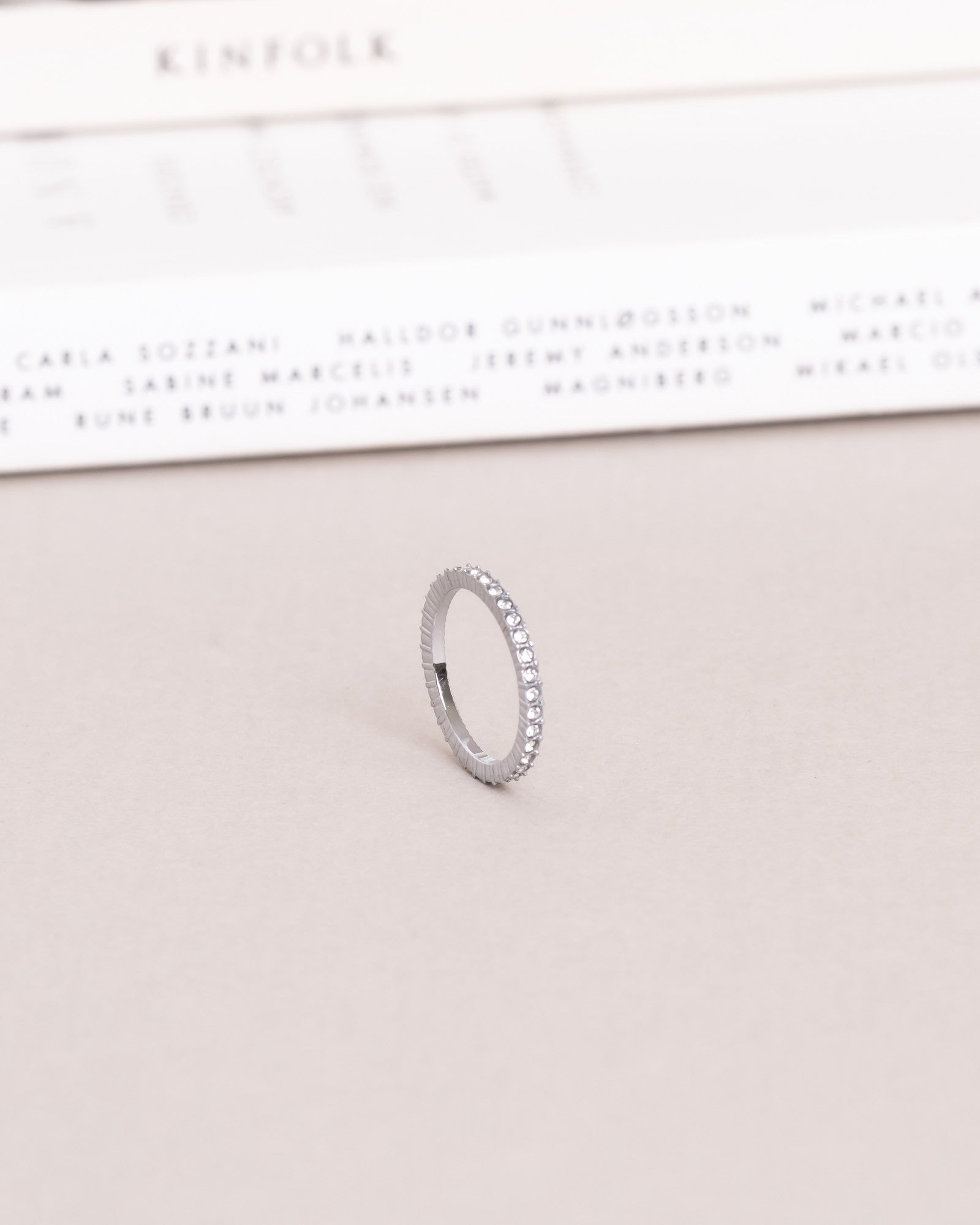 A minimalistic ring designed with small sparkling cubic zirconia stones. Can be worn alone or combined with other rings. Made from stainless steel with reinforced PVD plating, it is both durable and water-resistant. Perfect to wear alone or combine with other rings for a personal look.