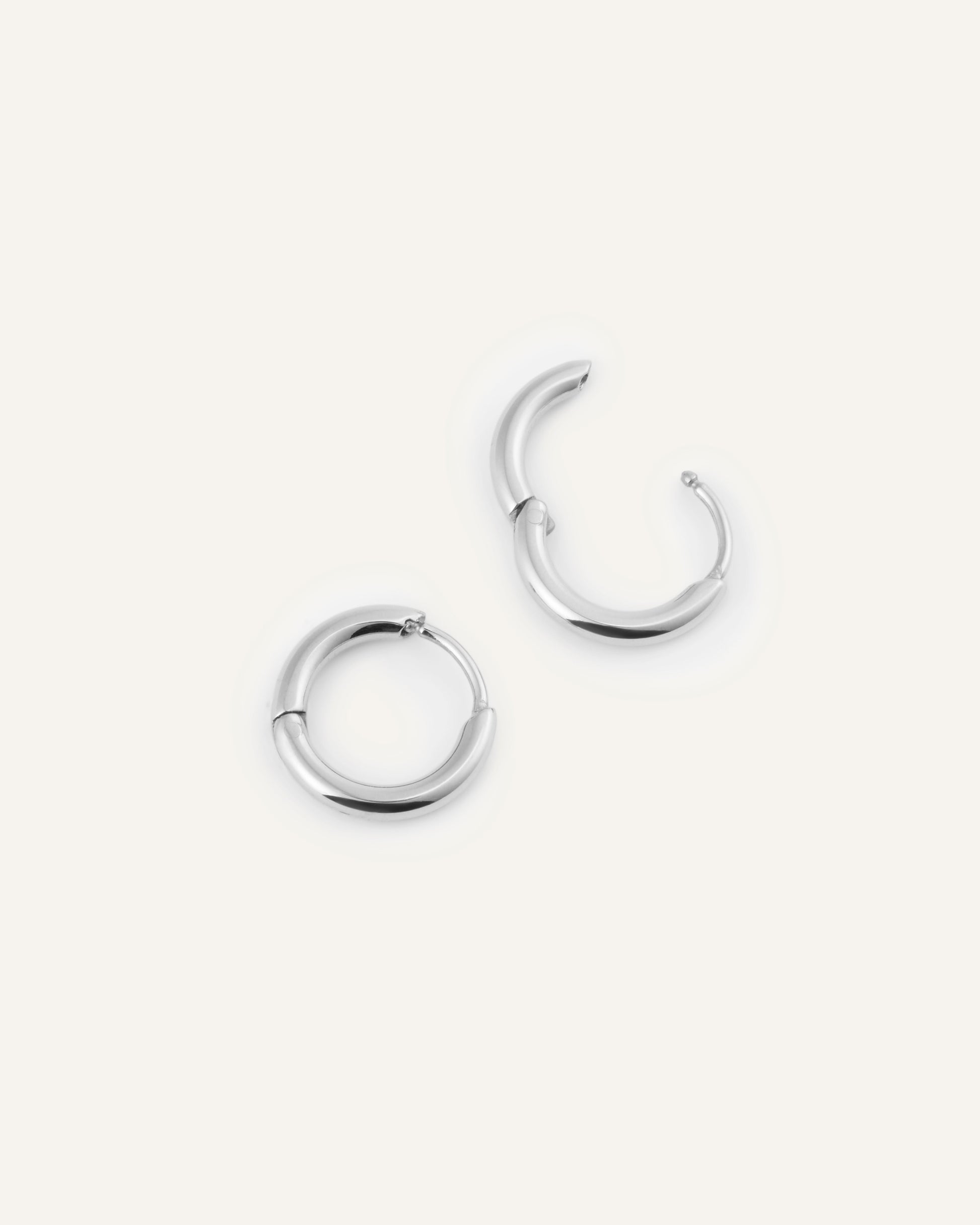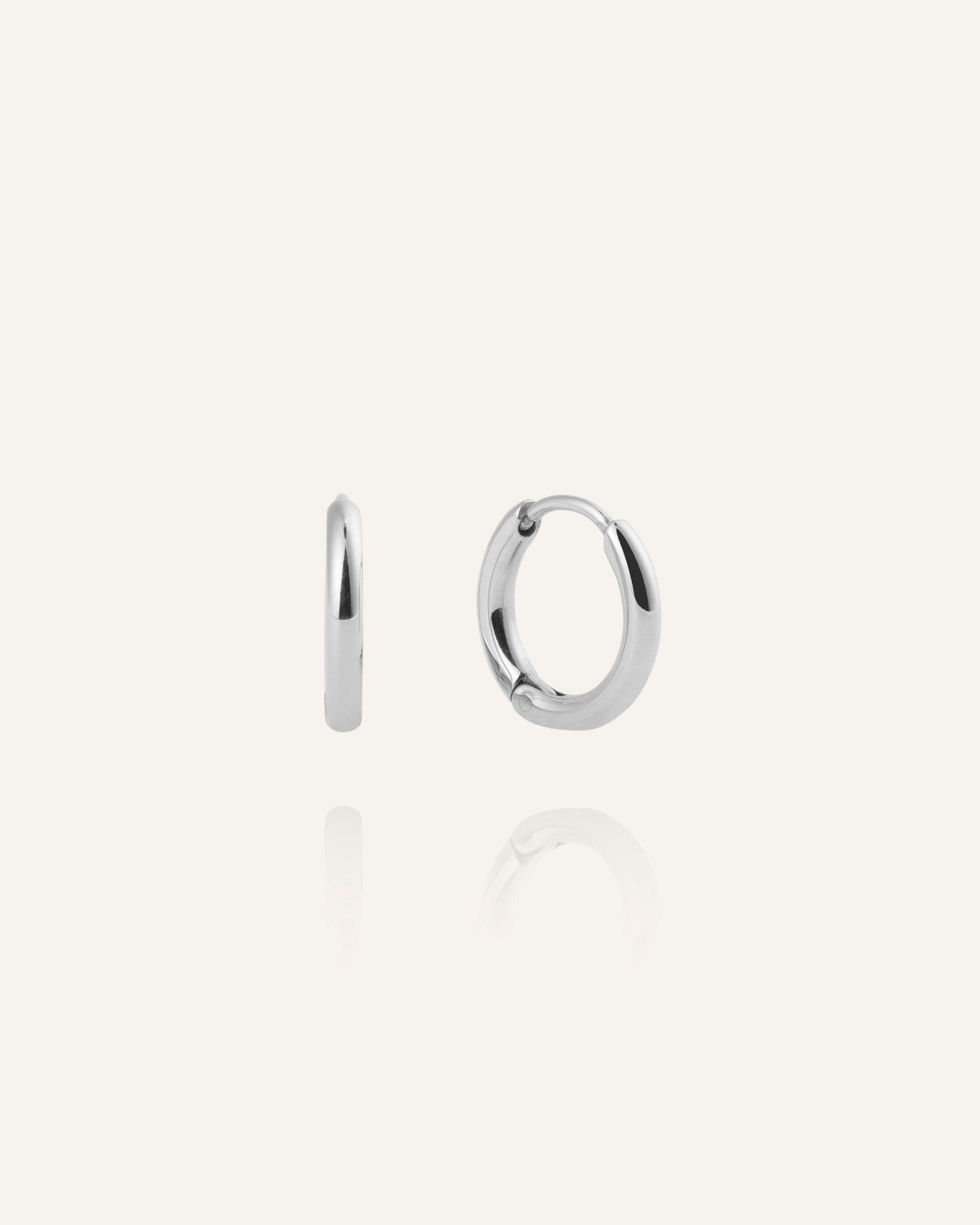Slim Steel Hoops feature a slender, elegant profile that catches the light in a crisp silver tone. The pared-back design delivers a clean finish that works just as well solo as layered with other earrings.