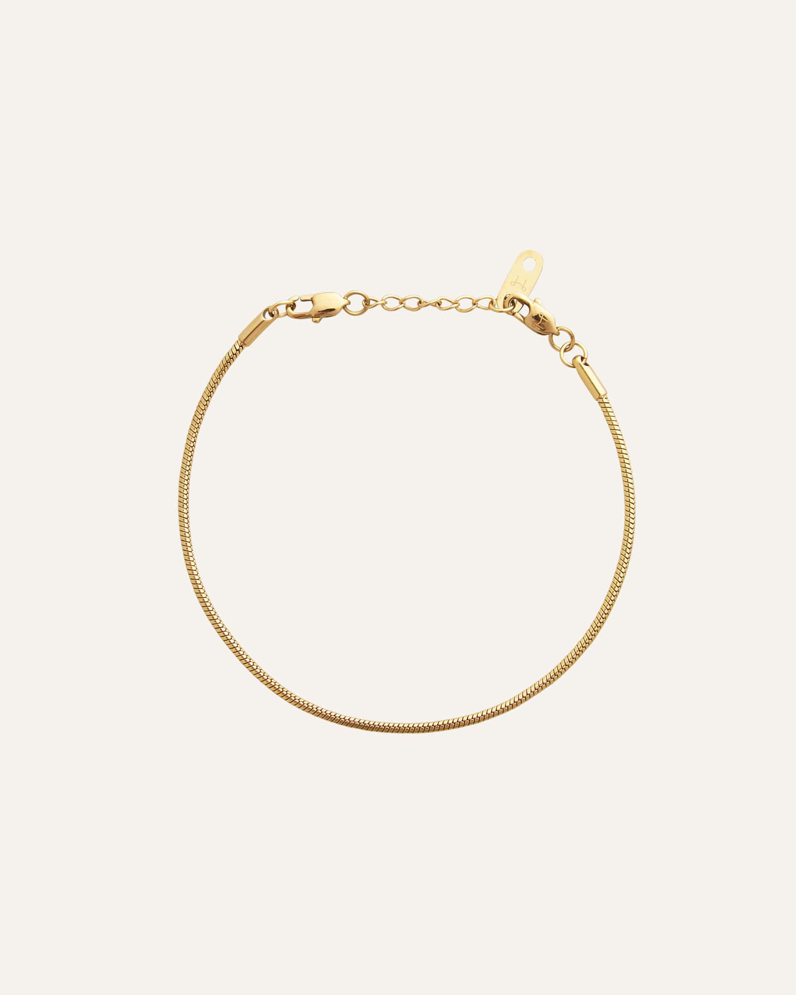 A classic bracelet with a softly flowing design. Made from stainless steel with 18K gold PVD plating, it is both durable and water-resistant, ensuring it retains its color and shine over time. The extension chain can easily be removed for a customized fit.