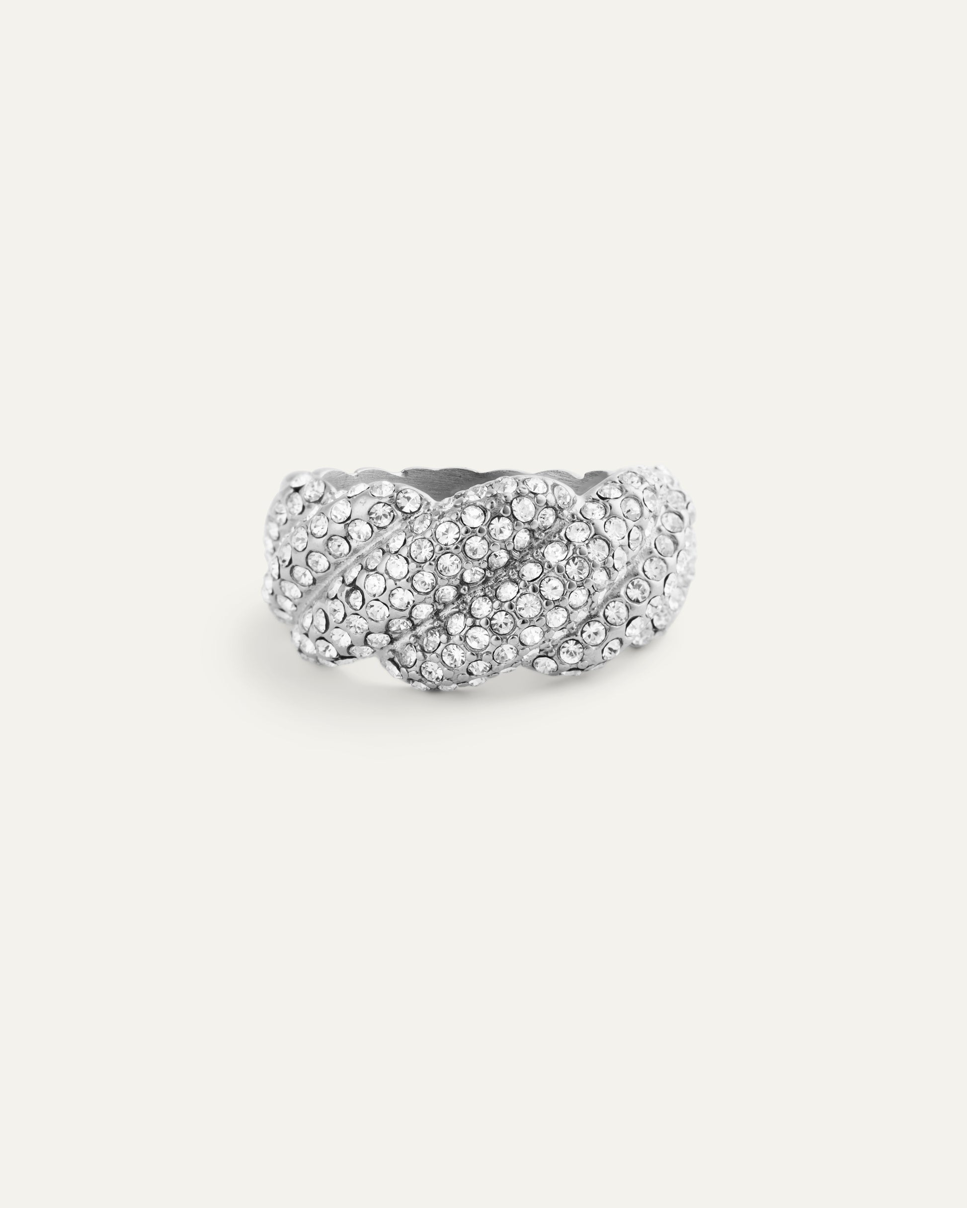 Tightly set white Preciosa stones in a softly twisted profile create bright brilliance and a refined expression. The silver color keeps the style cool and easy to combine – from day to night. Wear it solo or stacked for extra sparkle.