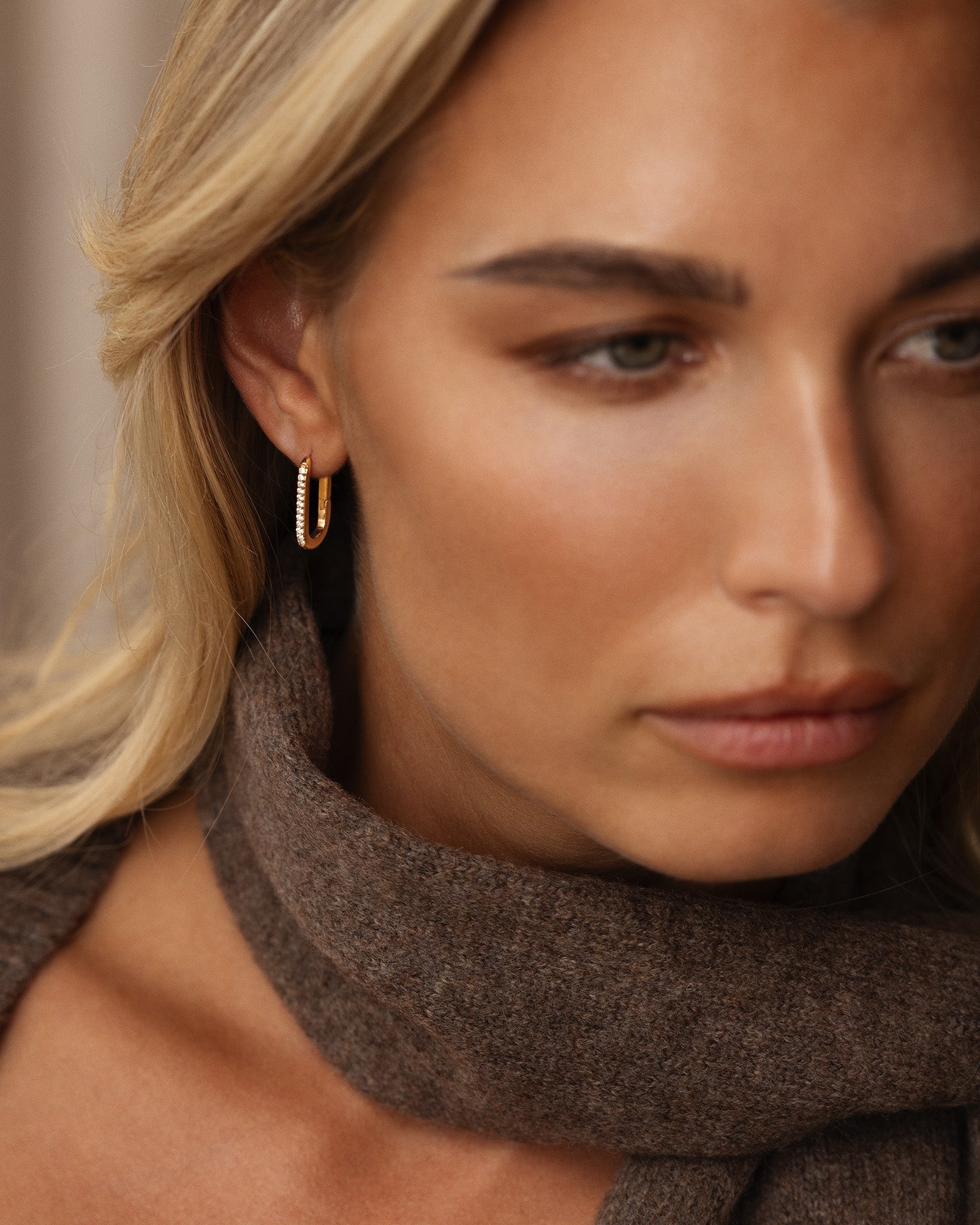 Sparkle U-Hoops shimmer in a gold tone. The slim U-shape is adorned with white cubic zirconia that catch the light with every movement. Easy to wear and easy to style—from day to night.