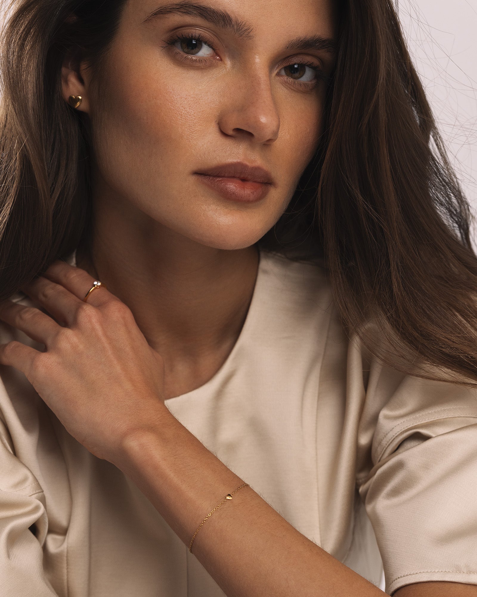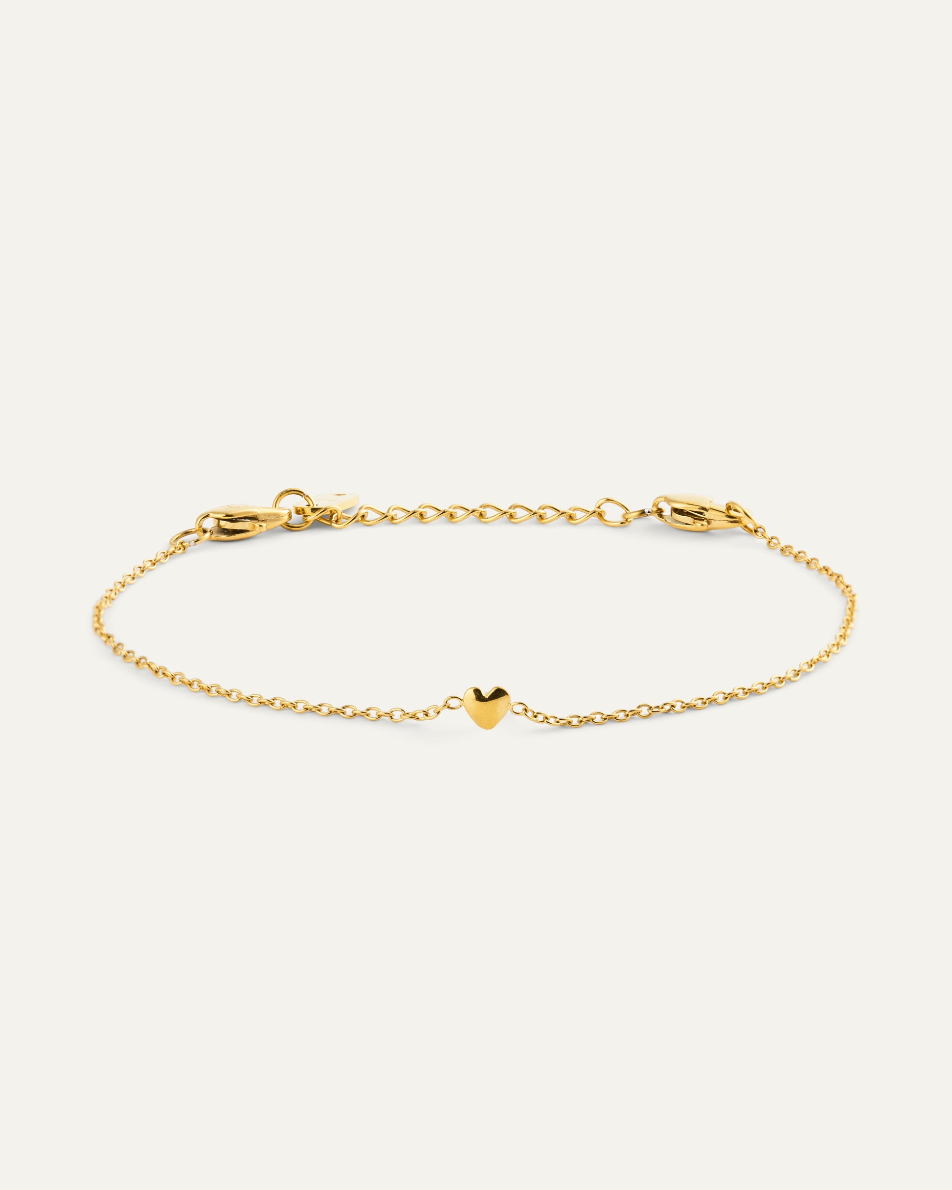 A refined gold-plated bracelet adorned with a small heart charm. With its minimalist design, it’s a modern expression of love, perfect for gifting or layering every day.