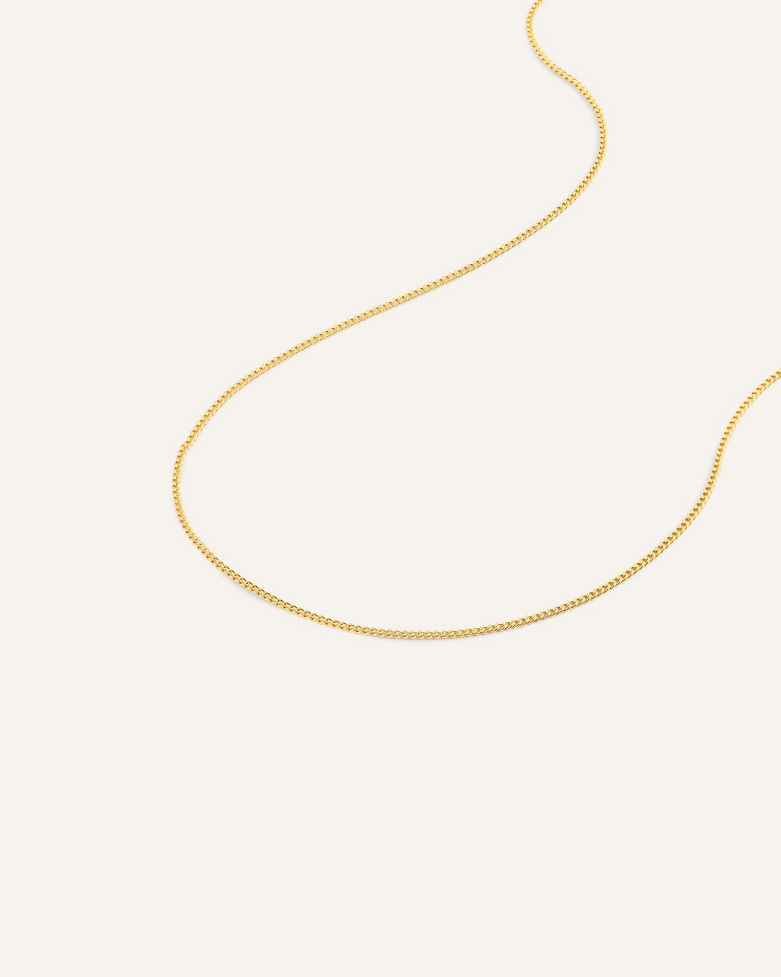 A fine curb chain that sits effortlessly against your skin, subtle enough to wear alone and strong enough to anchor a stack. It's the kind of necklace you put on in the morning and forget you're wearing until someone asks where it's from.