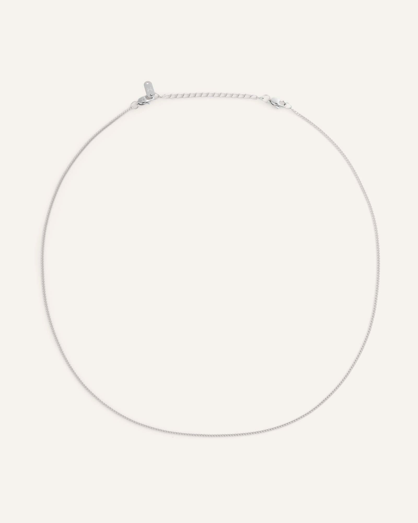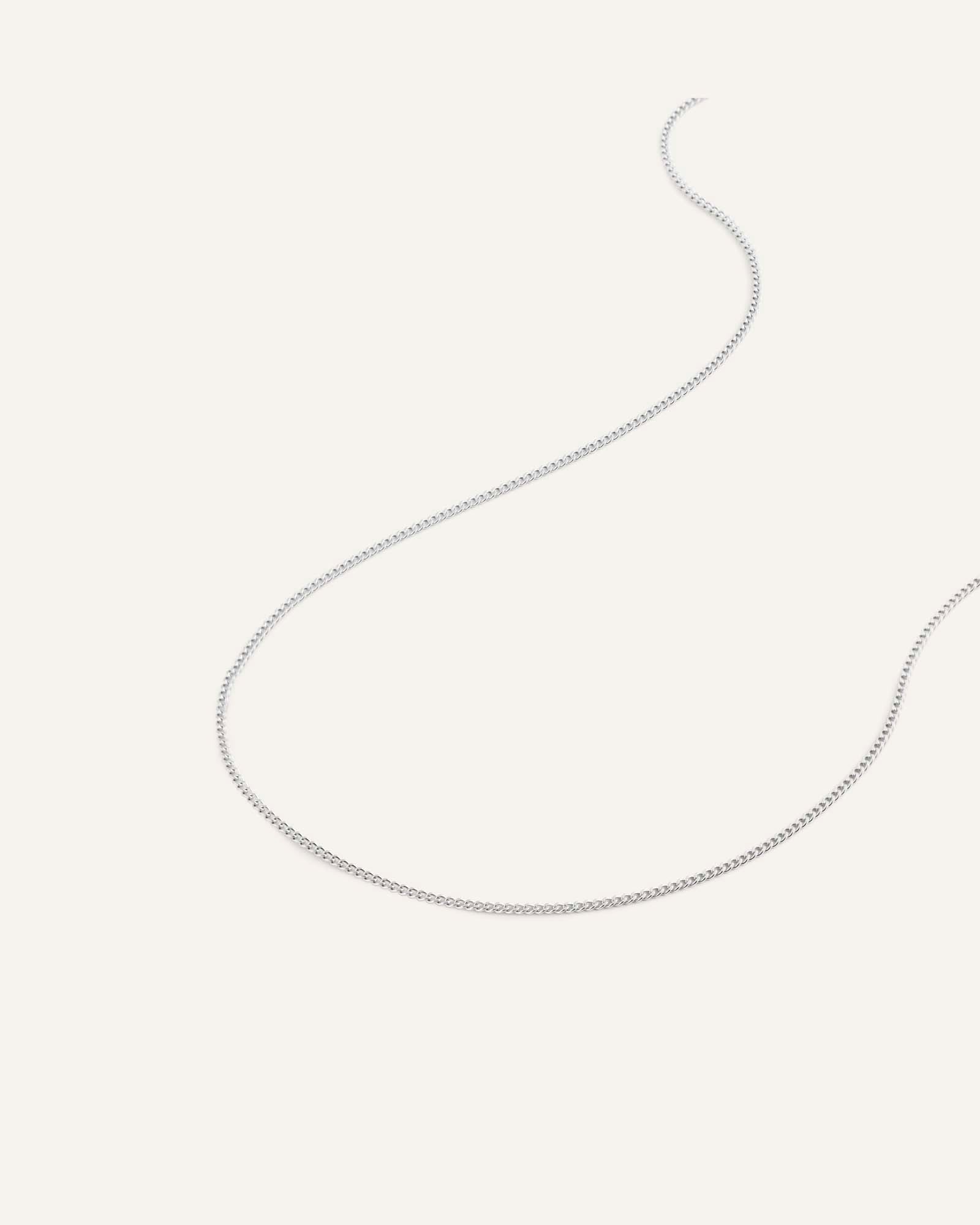 A fine curb chain that sits effortlessly against your skin, subtle enough to wear alone and strong enough to anchor a stack. It's the kind of necklace you put on in the morning and forget you're wearing until someone asks where it's from.