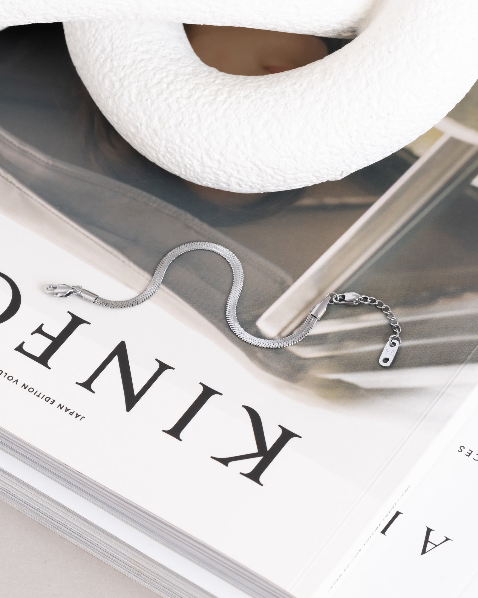 An elegant bracelet with a softly flowing design. Pair with the Thin Snake Necklace for a sleek, coordinated look. Made from stainless steel with PVD plating, it is both durable and water-resistant, ensuring it retains its color and shine over time. The extension chain can easily be removed for a customized fit.