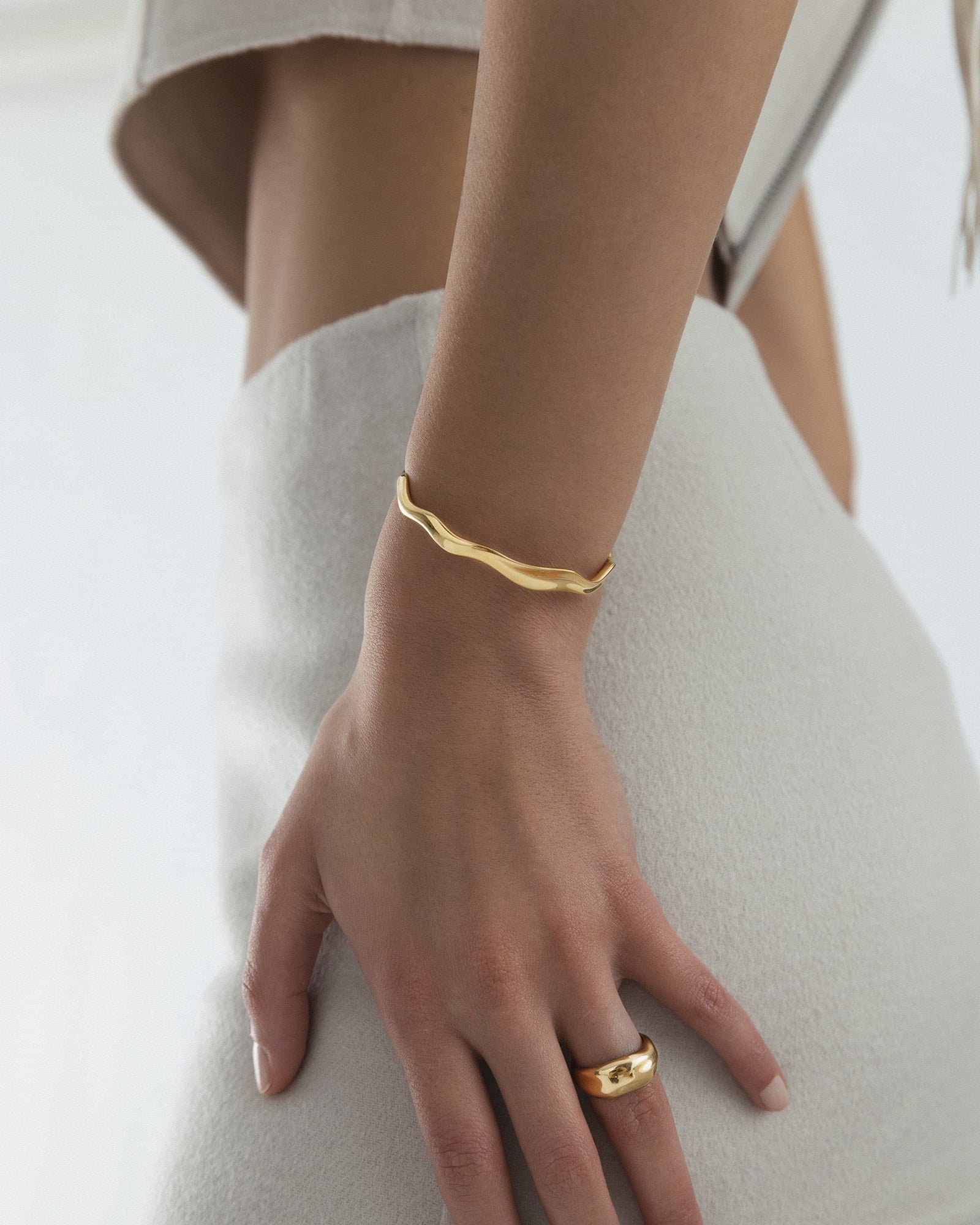 Wavy Bold Cuff Bracelet is a sleek bracelet with a wave-shaped design from our Wavy Collection. Made from stainless steel with 18K gold PVD plating, it is both durable and water-resistant, ensuring it retains its color and shine over time. The open design provides a flexible fit that smoothly adapts to your wrist.