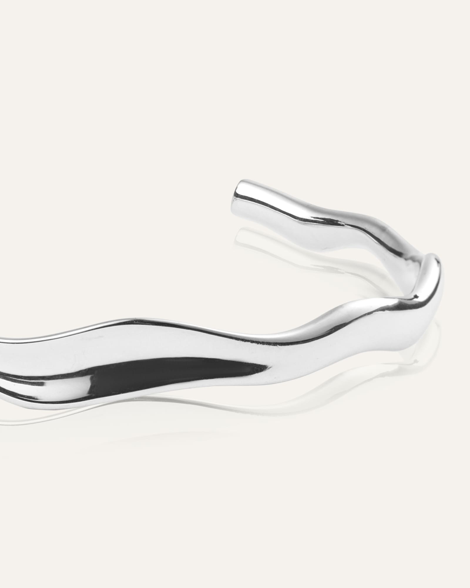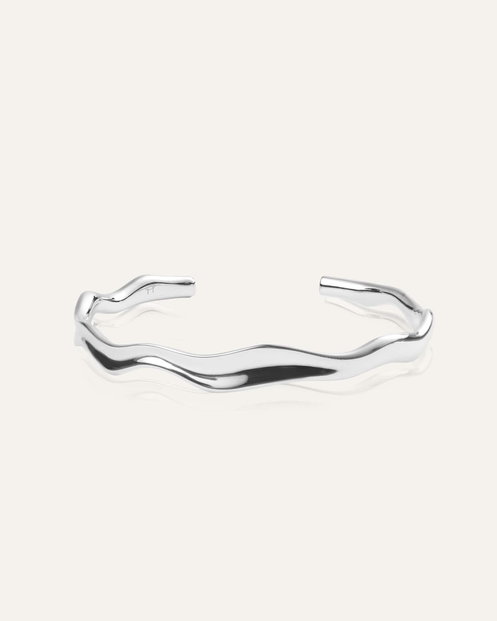 Wavy Bolded Cuff Bracelet is a sleek bracelet with a wave-shaped design from our Wavy Collection. Made from stainless steel with PVD plating, it is both durable and water-resistant, ensuring it retains its color and shine over time. The open design provides a flexible fit that smoothly adapts to your wrist.